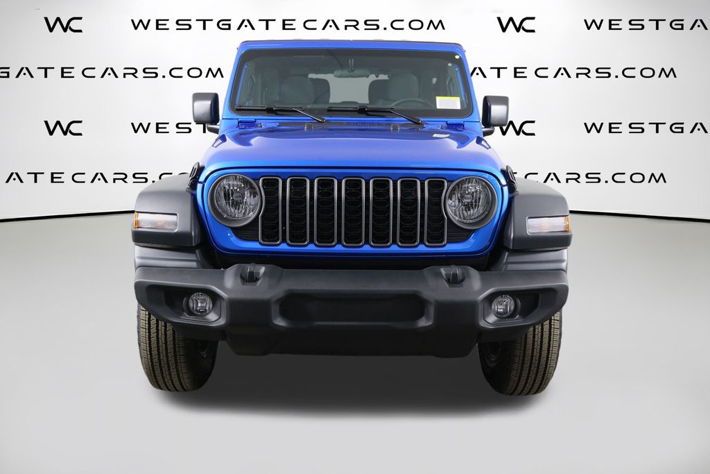 Hydro Blue Pearl Coat 2026 Jeep Wrangler Sport 4WD 8-Speed Automatic 2.0L I4 DOHC 12.3" Touchscreen Display, 3.45 Overall Top Gear Ratio, 4-Wheel Disc Brakes, 4G LTE Wi-Fi Hot Spot, 8 Speakers, ABS brakes, Air Conditioning, AM/FM radio: SiriusXM with 360L, Apple CarPlay, Apple CarPlay/Android Auto, Aux Battery, Black 3-Piece Hard Top, Brake assist, Cloth Low-Back Bucket Seats, Compass, Connectivity - US/Canada, Deep Tint Sunscreen Windows, Delay-off headlights, Driver door bin, Driver vanity mirror, Dual front impact airbags, Dual front side impact airbags, Electronic Stability Control, For More Info, Call 800-643-2112, Freedom Panel Storage Bag, Front anti-roll bar, Front Bucket Seats, Front Center Armrest w/Storage, Front fog lights, Front reading lights, Google Android Auto, Illuminated entry, Integrated Center Stack Radio, Integrated roll-over protection, Low tire pressure warning, Myflexcare Service Plan, Non-Lock Fuel Cap Without Discriminator, Normal Duty Suspension, Occupant sensing airbag, Outside temperature display, Overhead airbag, Panic alarm, ParkView Rear Back-Up Camera, Passenger door bin, Passenger vanity mirror, Power steering, Power windows, Quick Order Package 22B Sport, Radio data system, Radio: Uconnect 5 with 12.3" Display, Rear anti-roll bar, Rear reading lights, Rear Window Defroster, Rear Window Wiper/Washer, Remote keyless entry, SiriusXM Radio Service, SiriusXM with 360L, Speed control, Steering wheel mounted audio controls, Stop-Start Dual Battery System, Tachometer, Telescoping steering wheel, Tilt steering wheel, Traction control, Trip computer, Variably intermittent wipers, Wheels: 17" x 7.5" Black Steel Styled, Wheels: 17" x 7.5" Gray.