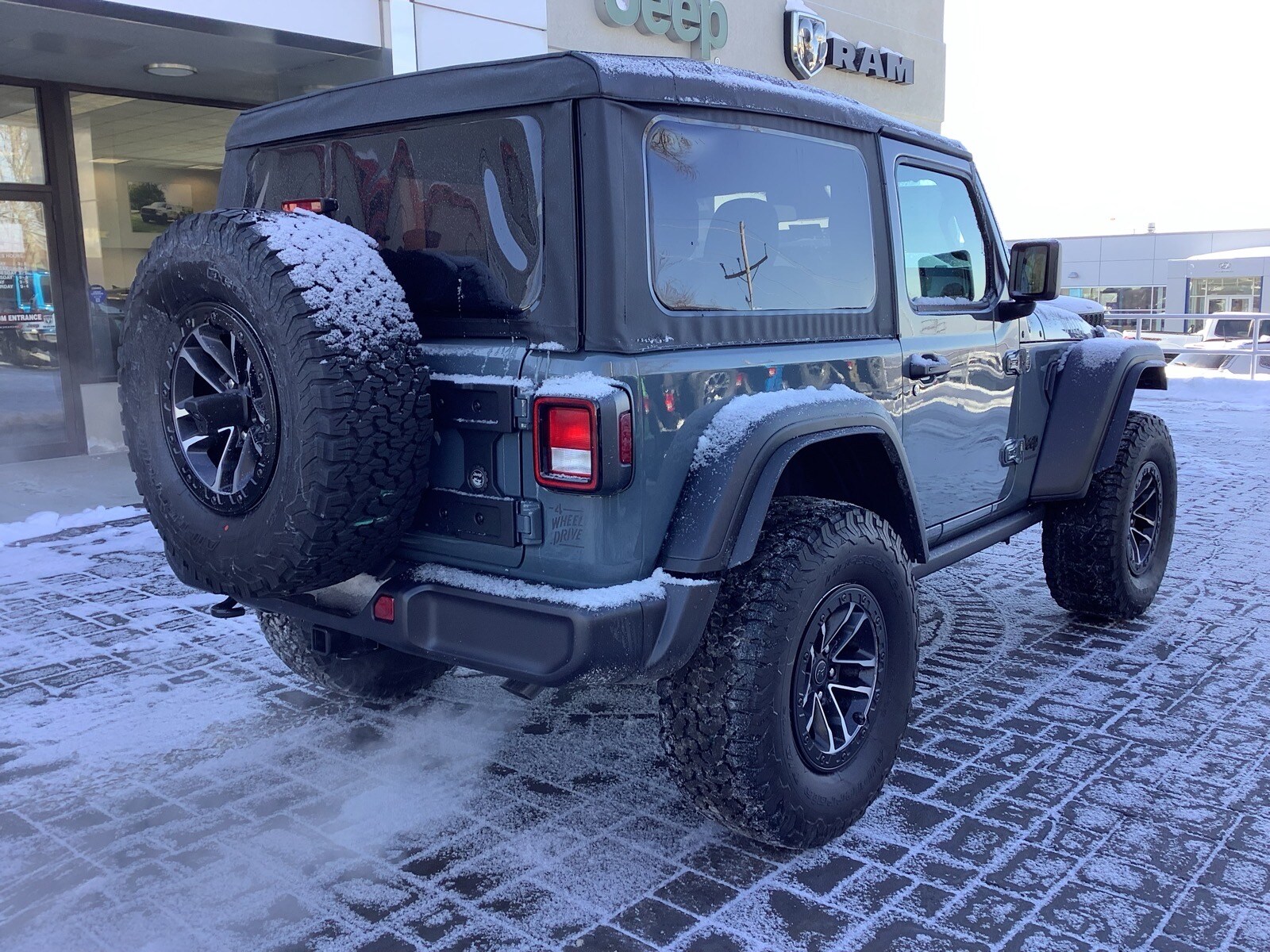 The 2026 Jeep Wrangler 2-Door Willys is a new sport utility vehicle with a 2.0L I4 DOHC DI Turbo Engine and ESS. It features a 4x4 drivetrain and is equipped with modern convenience and off-road features. The vehicle is available at Laurel Chrysler Dodge Jeep Ram and comes in Anvil exterior with Black interior. Please verify any information in question with Laurel Valley Motors.