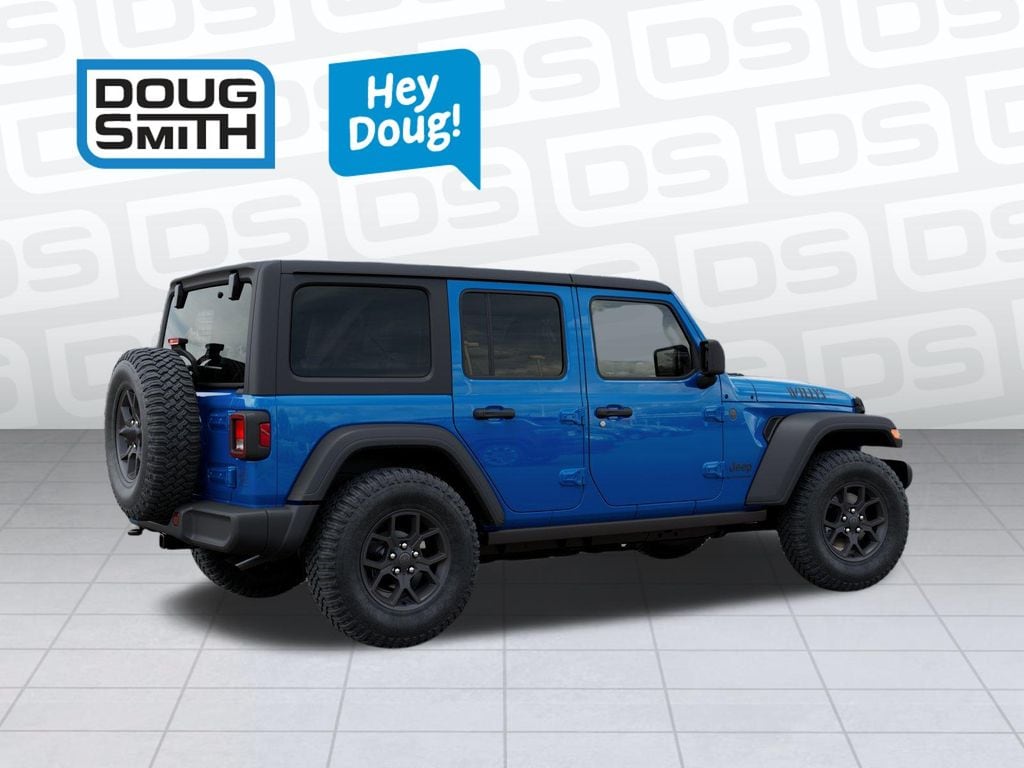 Hydro Blue Pearl Coat 2026 Jeep Wrangler Willys 4WD 8-Speed Automatic 3.6L V6 24V VVT. Price includes $1000 National Retail Bonus Cash. Exp. 03/31/2026. Peace of mind with factory warranty. 36 months/36,000 miles from original in-service date. A name you can trust at Doug Smith Chrysler Dodge Jeep Ram - Spanish Fork dedicated to your satisfaction before, during, and after your purchase.
