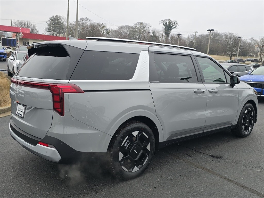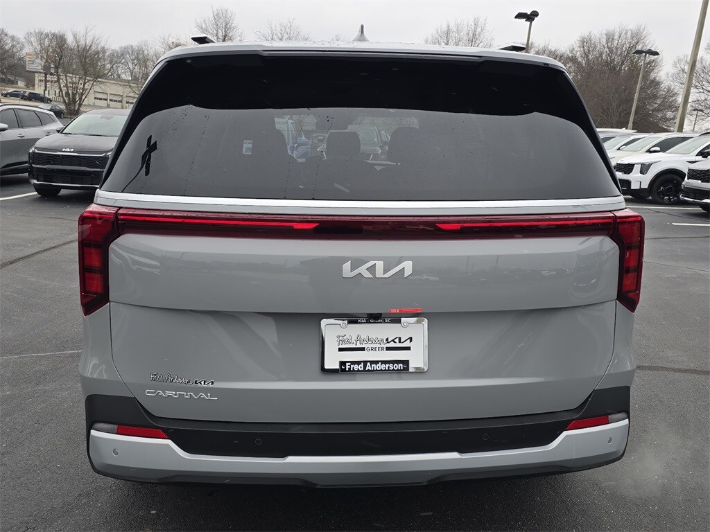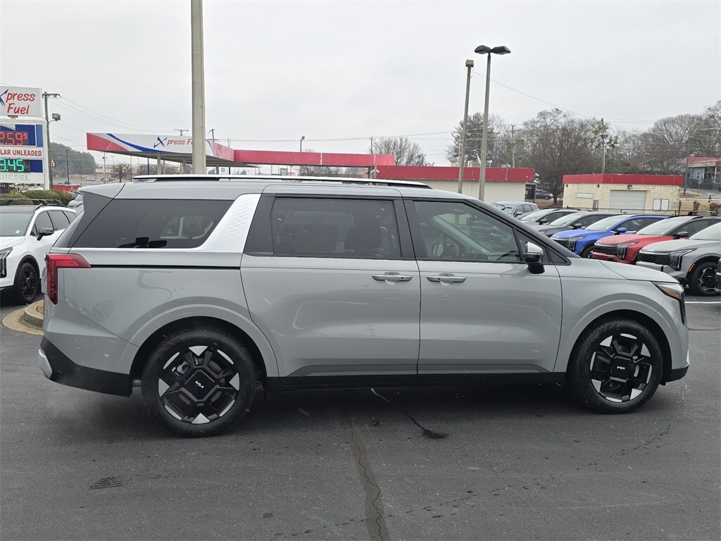 2026 Kia Carnival EX Ceramic Silver 3.51 Axle Ratio, 3rd row seats: split-bench, 4-Wheel Disc Brakes, 8 Speakers, ABS brakes, Air Conditioning, Alloy wheels, AM/FM radio: SiriusXM, Apple CarPlay & Android Auto, Artificial Leather Seat Trim, Auto High-beam Headlights, Auto-Dimming Mirror with HomeLink, Automatic temperature control, Brake assist, Bumpers: body-color, Carpeted Floor Mats (8-Passenger), Compass, Delay-off headlights, Driver door bin, Driver vanity mirror, Dual front impact airbags, Dual front side impact airbags, Electronic Stability Control, Emergency communication system, Exterior Parking Camera Rear, Four wheel independent suspension, Front anti-roll bar, Front Bucket Seats, Front Center Armrest, Front dual zone A/C, Front reading lights, Fully automatic headlights, Heated door mirrors, Heated Front Bucket Seats, Heated front seats, Illuminated entry, Knee airbag, Leather Shift Knob, Leather steering wheel, Low tire pressure warning, Memory seat, Navigation System, Occupant sensing airbag, Outside temperature display, Overhead airbag, Overhead console, Panic alarm, Passenger door bin, Passenger vanity mirror, Power door mirrors, Power driver seat, Power Liftgate, Power passenger seat, Power steering, Power windows, Radio: AM/FM/HD Audio System, Rear air conditioning, Rear anti-roll bar, Rear reading lights, Rear window defroster, Rear window wiper.