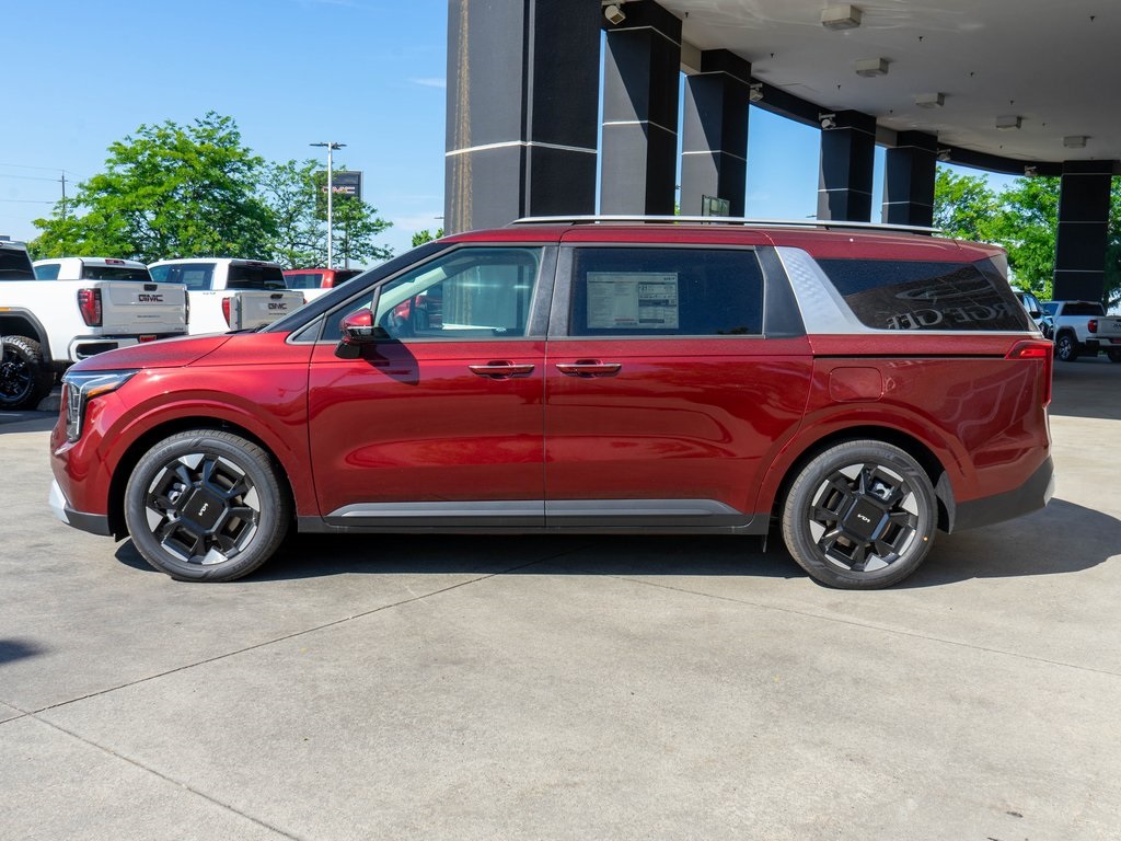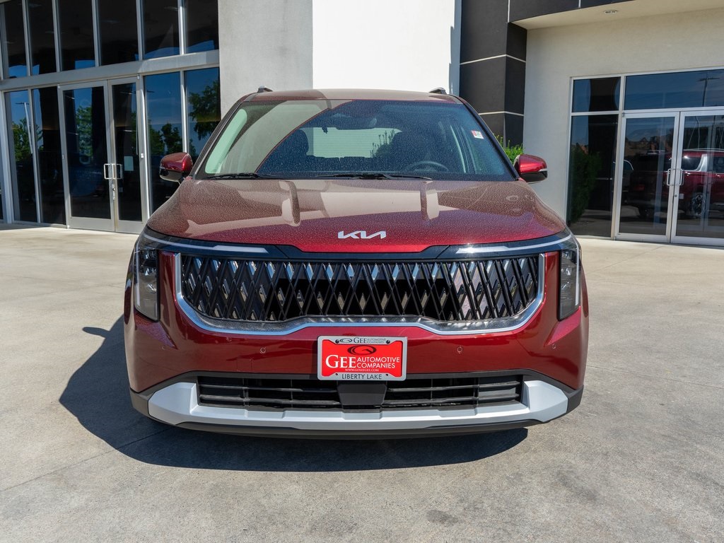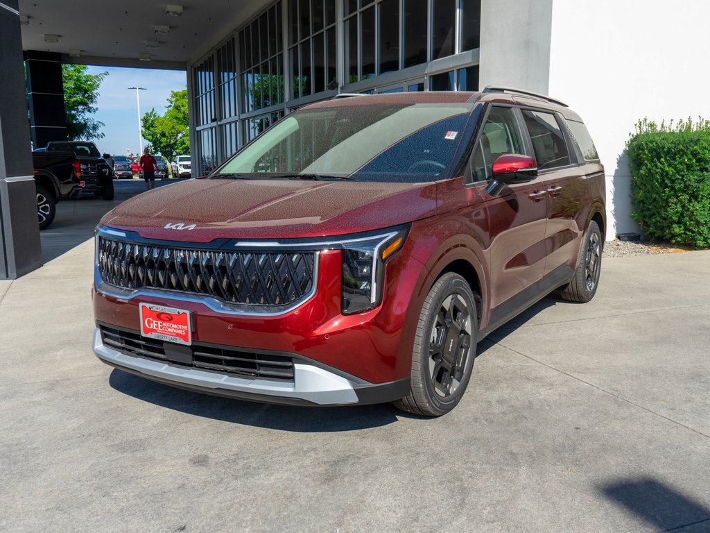 Flare Red 2026 Kia Carnival EX FWD 8-Speed Automatic V6 3.51 Axle Ratio, 3rd row seats: split-bench, 4-Wheel Disc Brakes, 8 Speakers, ABS brakes, Air Conditioning, All Weather Floor Mats (8-Passenger), Alloy wheels, AM/FM radio: SiriusXM, Apple CarPlay & Android Auto, Artificial Leather Seat Trim, Auto High-beam Headlights, Automatic temperature control, Brake assist, Bumpers: body-color, Compass, Delay-off headlights, Driver door bin, Driver vanity mirror, Dual front impact airbags, Dual front side impact airbags, Electronic Stability Control, Emergency communication system, Exterior Parking Camera Rear, Four wheel independent suspension, Front anti-roll bar, Front Bucket Seats, Front Center Armrest, Front dual zone A/C, Front reading lights, Fully automatic headlights, Heated door mirrors, Heated Front Bucket Seats, Heated front seats, Illuminated entry, Knee airbag, Leather Shift Knob, Leather steering wheel, Low tire pressure warning, Memory seat, Navigation System, Occupant sensing airbag, Outside temperature display, Overhead airbag, Overhead console, Panic alarm, Passenger door bin, Passenger vanity mirror, Power door mirrors, Power driver seat, Power Liftgate, Power passenger seat, Power steering, Power windows, Radio: AM/FM/HD Audio System, Rear air conditioning, Rear anti-roll bar, Rear reading lights, Rear window defroster, Rear window wiper, Reclining 3rd row seat, Remote keyless entry, Security system, Speed control, Speed-sensing steering, Split folding rear seat, Spoiler, Steering wheel mounted audio controls, Tachometer, Telescoping steering wheel, Tilt steering wheel, Traction control, Trip computer, Turn signal indicator mirrors, Variably intermittent wipers.