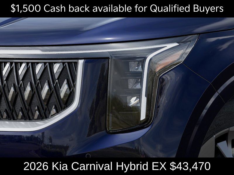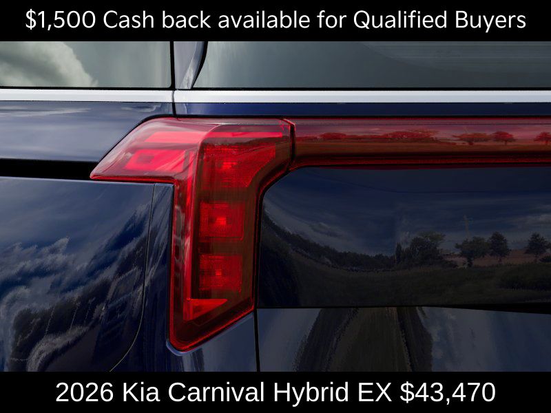 $1,000 off MSRP! Kia Store Elizabethtown is delighted to offer this fantastic-looking 2026 Kia Carnival Hybrid EX in Deep Chroma Blue. Well equipped with: 3rd row seats: split-bench, 4-Wheel Disc Brakes, 8 Speakers, ABS brakes, Air Conditioning, Alloy wheels, AM/FM radio: SiriusXM, Apple CarPlay & Android Auto, Artificial Leather Seat Trim, Auto High-beam Headlights, Automatic temperature control, Brake assist, Bumpers: body-color, Compass, Delay-off headlights, Driver door bin, Driver vanity mirror, Dual front impact airbags, Dual front side impact airbags, Electronic Stability Control, Emergency communication system, Exterior Parking Camera Rear, Four wheel independent suspension, Front anti-roll bar, Front Bucket Seats, Front Center Armrest, Front dual zone A/C, Front reading lights, Fully automatic headlights, Heated door mirrors, Heated Front Bucket Seats, Heated front seats, Illuminated entry, Knee airbag, Leather Shift Knob, Leather steering wheel, Low tire pressure warning, Memory seat, Navigation System, Occupant sensing airbag, Outside temperature display, Overhead airbag, Overhead console, Panic alarm, Passenger door bin, Passenger vanity mirror, Power door mirrors, Power driver seat, Power Liftgate, Power passenger seat, Power steering, Power windows, Radio: Navigation System w/SiriusXM, Rear air conditioning, Rear anti-roll bar, Rear reading lights, Rear window defroster, Rear window wiper, Reclining 3rd row seat, Remote keyless entry, Security system, Speed control, Speed-sensing steering, Split folding rear seat, Spoiler, Steering wheel mounted audio controls, Tachometer, Telescoping steering wheel, Tilt steering wheel, Traction control, Trip computer, Turn signal indicator mirrors, Variably intermittent wipers, and Wheels: 19" Black Alloy. Price includes: $1500 - KFA Dealer Choice Program: $1500 discount and 5.25% APR for 36 months. $30.08 per $1000 financed. Available to well qualified buyers who finance through Kia Finance America. 506. Exp. 03/31/2026