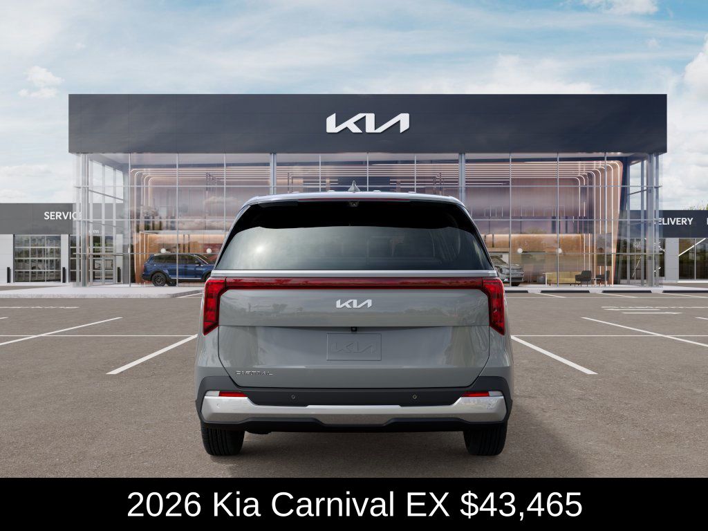 $1,000 off MSRP! Kia Store Elizabethtown is honored to offer this outstanding 2026 Kia Carnival EX in Ceramic Silver. Well equipped with: 3rd row seats: split-bench, Navigation System, Apple CarPlay & Android Auto, Heated front seats, Rear air conditioning, Power Liftgate, Memory seat, Power driver seat, Power passenger seat, Leather steering wheel, Alloy wheels, Remote keyless entry, Lane Departure Warning, Artificial Leather Seat Trim, WiFi Hotspot.