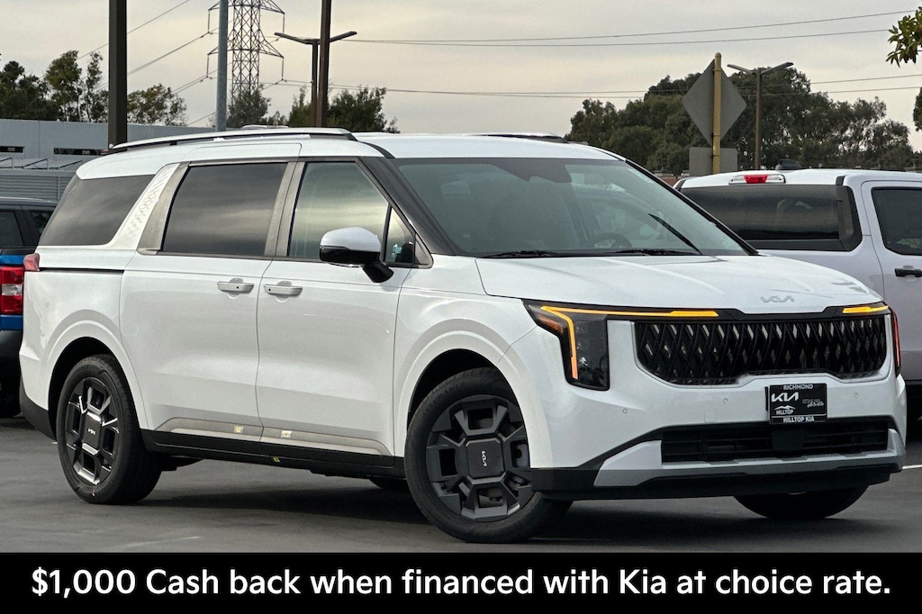 Snow White Pearl 2026 Kia Carnival Hybrid EX FWD 6-Speed Automatic 1.6L I4 DGI Hybrid Turbocharged DOHC 16V LEV3-SULEV30. Recent Arrival! 34/31 City/Highway MPG. Price includes: $1000 - KFA Dealer Choice Program: $1000 discount and 5.25% APR for 36 months. $30.08 per $1000 financed. Available to well qualified buyers who finance through Kia Finance America. Hilltop Kia is dedicated to your satisfaction before, during, and after your purchase. We'll go the extra mile to take care of you.