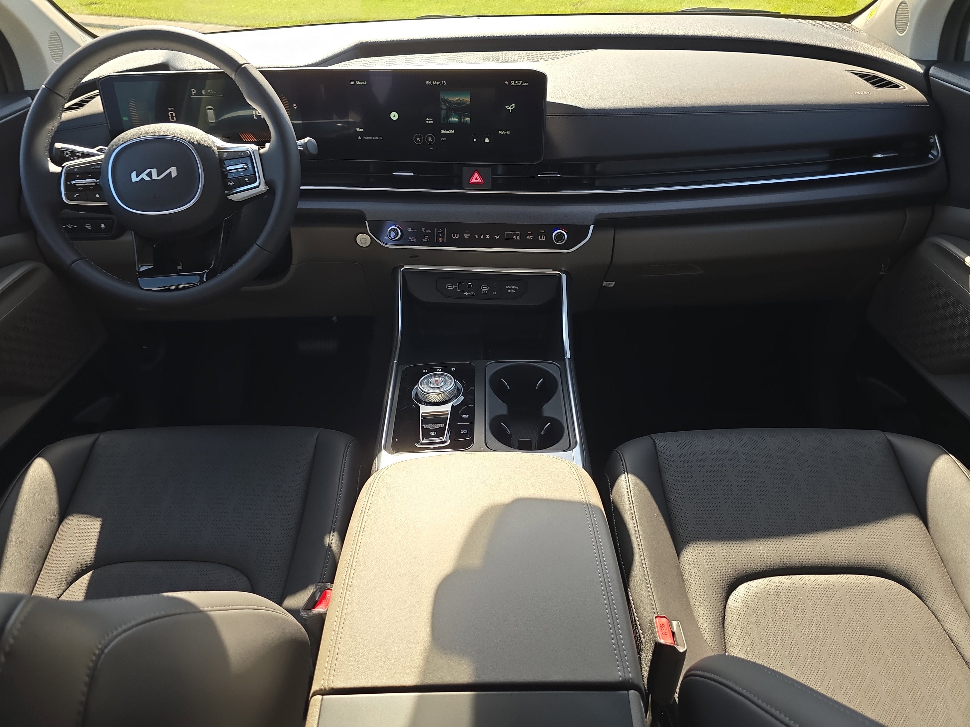 Taupe/Off-Black, artificial leather seat trim, Ceramic Silver, carpeted floor mats (8-passenger), cargo net, Wheels: 19 Black Alloy, Vehicle Stability Management Electronic Stability Control, Variable Intermittent Wipers, Trunk/Hatch Auto-Latch, Trip Computer, Transmission: 6-Speed Automatic -inc: Shift-by-wire. This Kia Carnival Hybrid has a dependable Intercooled Turbo Gas/Electric I-4 1.6 L/98 engine powering this Automatic transmission. Experience a fully-loaded Kia Carnival Hybrid EX. Transmission w/Driver Selectable Mode, Tires: P235/55R19 Low Rolling Resistance, Tire Mobility Kit, Tailgate/Rear Door Lock Included w/Power Door Locks, Strut Front Suspension w/Coil Springs, Smart Power Liftgate Power Liftgate Rear Cargo Access, Smart Device Integration, Single Stainless Steel Exhaust w/Black Tailpipe Finisher, Side Impact Beams, Removable 40-20-40 Folding Split-Bench Front Facing Manual Reclining Tumble Forward Rear Seat w/Manual Fore/Aft, Remote Releases -Inc: Smart Power Liftgate Proximity Cargo Access and Power Fuel, Remote Keyless Entry w/Integrated Key Transmitter, 4 Door Curb/Courtesy, Illuminated Entry and Panic Button, Regenerative, Rear HVAC w/Separate Controls, Rear Cupholder, Rear Cross-Traffic Collision Avoidance (RCCA), Rear Child Safety Locks, Radio: Navigation System w/SiriusXM -inc: connected car navigation cockpit, 6 speakers, 12.3 display, Android Auto, Apple CarPlay, Wi-Fi hotspot, Bluetooth w/voice recognition, modem, 1 media port and 6 USB ports, Radio w/Seek-Scan, Clock, Speed Compensated Volume Control, Aux Audio Input Jack, Steering Wheel Controls, Voice Activation and External Memory Control, Proximity Sliding Rear Doors. Stop by today! Call Kia of Wesley Chapel at (813) 322-6196 to check availability or to schedule a test drive! We are located at 28555 State Rd 54, Wesley Chapel FL 33543. Receive your first 2 oil changes for free with the purchase of a new vehicle. See the Morgan difference!