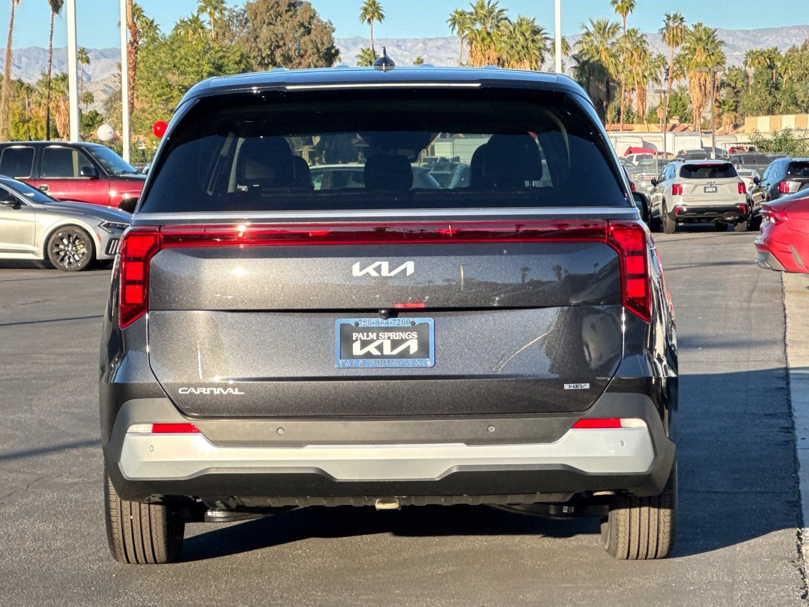Palm Springs Kia The Original Desert Kia Dealership where we value your time and and business! Whether you are shopping for a new vehicle or servicing your current vehicle, we offer an unique relaxed atmosphere where kids and family, too, will enjoy our amenities like wifi, children's play area "high grade" coffee machine, bottled water and plenty of comfortable seating! Panthera Metal 2026 Kia Carnival Hybrid LXS FWD 6-Speed Automatic 1.6L I4 DGI Hybrid Turbocharged DOHC 16V LEV3-SULEV30 1.6L I4 DGI Hybrid Turbocharged DOHC 16V LEV3-SULEV30.