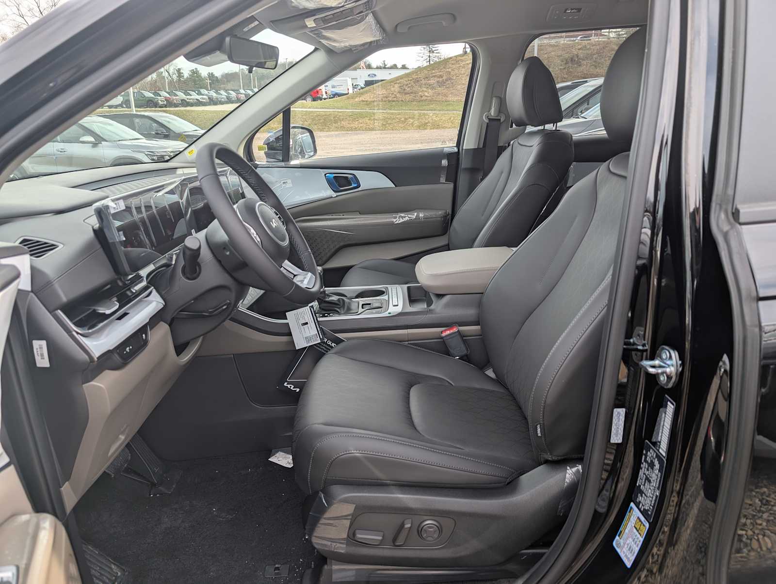 Nav System, Third Row Seat, Heated Seats, Vehicle Anti-Theft System, Satellite Radio, Smart Device Integration, Leather Wrapped Steering Wheel, WiFi Hotspot, Remote Engine Start. Aurora Black Pearl exterior and Taupe/Off-Black interior. Kia LXS with Aurora Black Pearl exterior and Taupe/Off-Black interior features a V6 Cylinder Engine with 287 HP at 6400 RPM.