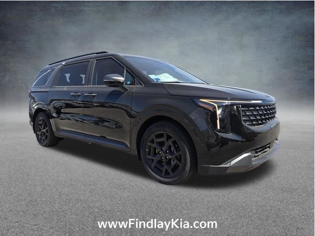 Welcome to Findlay Kia on Sahara Ave in Las Vegas. This Carnival Hybrid is equipped with the following options: Rear Seat Entertainment Package (Dual Screen Rear Seat Entertainment System), SX Prestige Seat Package (2nd Row Laminated Windows, Ambient Lighting, Heated/Ventilated 2nd Row Power Vip Lounge Seats, and High Glossy Interior Trim), 1.6L I4 DGI Hybrid Turbocharged DOHC 16V LEV3-SULEV30, 12 Speakers, 3rd row seats: split-bench, 4-Wheel Disc Brakes, ABS brakes, Air Conditioning, Alloy wheels, AM/FM radio: SiriusXM, Apple CarPlay & Android Auto, Auto High-beam Headlights, Auto-dimming Rear-View mirror, Automatic temperature control, Brake assist, Bumpers: body-color, Cargo Net, Compass, Delay-off headlights, Driver door bin, Driver vanity mirror, Dual front impact airbags, Dual front side impact airbags, Electronic Stability Control, Emergency communication system, Exterior Parking Camera Rear, Four wheel independent suspension, Front anti-roll bar, Front Bucket Seats, Front Center Armrest, Front dual zone A/C, Front fog lights, Front reading lights, Fully automatic headlights, Garage door transmitter: HomeLink, Heads-Up Display, Heated and Ventilated Front Bucket Seats, Heated door mirrors, Heated front seats, Heated steering wheel, Illuminated entry, Knee airbag, Leather Seat Trim, Leather Shift Knob, Leather steering wheel, Low tire pressure warning, Luxury Carpeted Floor Mats, Memory seat, Navigation System, Occupant sensing airbag, Outside temperature display, Overhead airbag, Overhead console, Panic alarm, Passenger door bin, Passenger vanity mirror, Power 2nd-Row Moonroof, Power door mirrors, Power driver seat, Power Liftgate, Power moonroof, Power passenger seat, Power steering, Power windows, Radio: : Navigation System with SiriusXM, Rain sensing wipers, Rear air conditioning, Rear anti-roll bar, Rear reading lights, Rear window defroster, Rear window wiper, Reclining 3rd row seat, Remote keyless entry, Security system, Small First Aid Kit, Speed control, Speed-sensing steering, Split folding rear seat, Spoiler, Steering wheel mounted audio controls, Tachometer, Telescoping steering wheel, Tilt steering wheel, Traction control, Trip computer, Turn signal indicator mirrors, Variably intermittent wipers, Ventilated front seats.