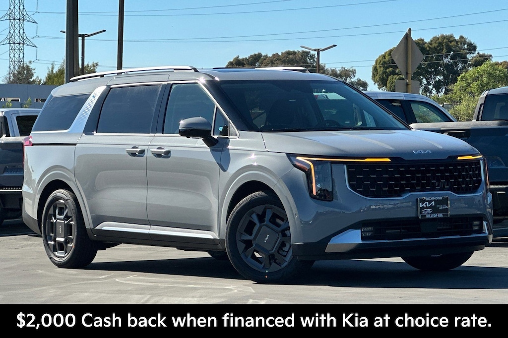 Ceramic Silver 2026 Kia Carnival Hybrid SX FWD 6-Speed Automatic 1.6L I4 DGI Hybrid Turbocharged DOHC 16V LEV3-SULEV30. Recent Arrival! 34/31 City/Highway MPG. Price includes: $2000 - KFA Dealer Choice Program: $2000 discount and 5.25% APR for 36 months. $30.08 per $1000 financed. Available to well qualified buyers who finance through Kia Finance America. 506. Exp. 03/31/2026. Hilltop Kia is dedicated to your satisfaction before, during, and after your purchase. We'll go the extra mile to take care of you.