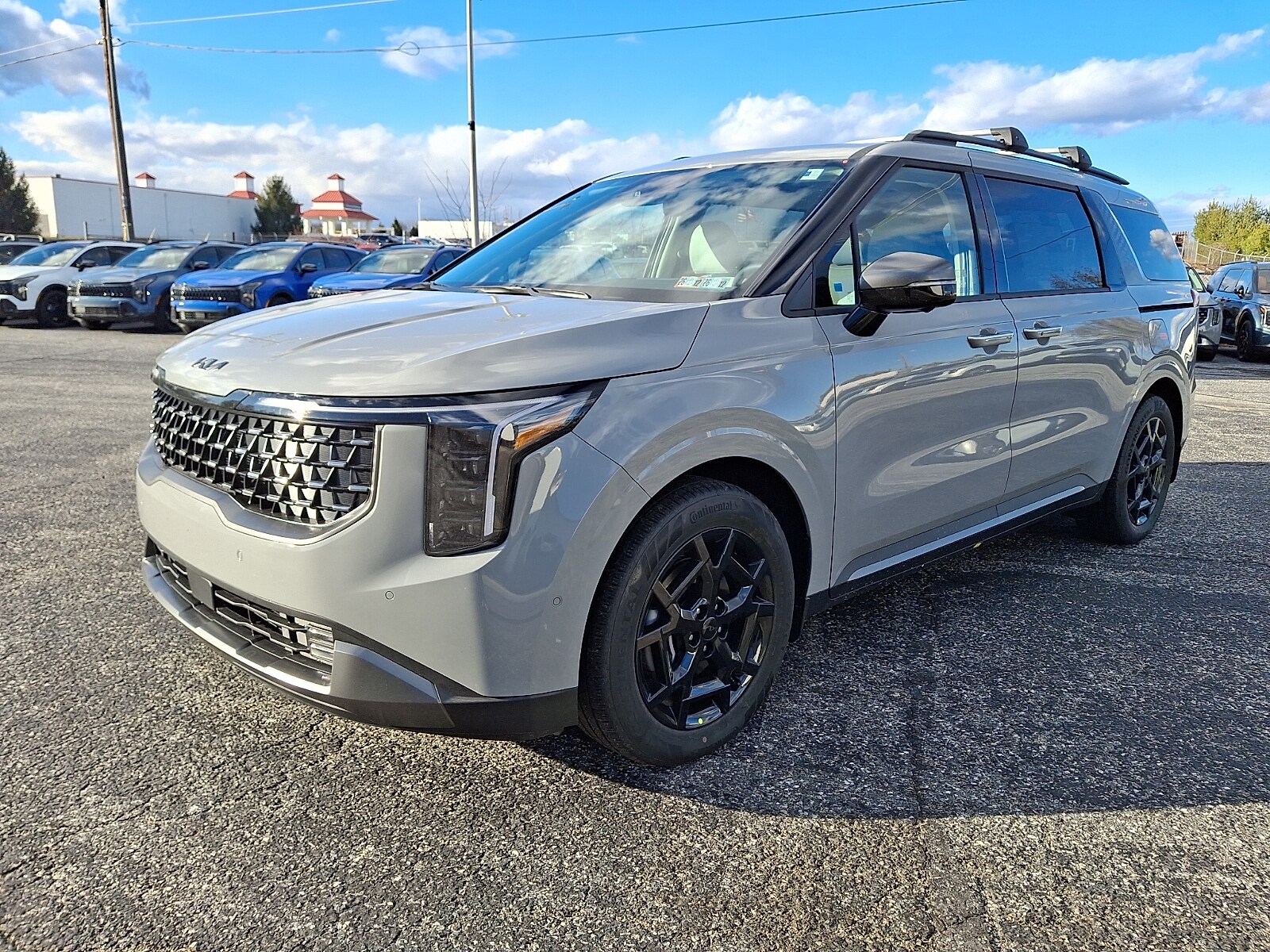 Ceramic Silver 2026 Kia Carnival Hybrid SX Prestige FWD 6-Speed Automatic 1.6L I4 DGI Hybrid Turbocharged DOHC 16V LEV3-SULEV30. 34/31 City/Highway MPG.