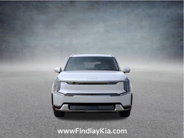 Welcome to Findlay Kia on Sahara Ave in Las Vegas. This EV9 is equipped with the following options: ABS brakes, Alloy wheels, Electronic Stability Control, Front dual zone A/C, Heated door mirrors, Heated front seats, Heated rear seats, Illuminated entry, Low tire pressure warning, Navigation System, Power Liftgate, Power moonroof, Remote keyless entry, Traction control, 14 Speakers, 3rd row seats: split-bench, 4-Wheel Disc Brakes, Air Conditioning, AM/FM radio: SiriusXM, Apple CarPlay & Android Auto, Auto High-beam Headlights, Auto-dimming door mirrors, Auto-dimming Rear-View mirror, Auto-leveling suspension, Automatic temperature control, Brake assist, Bumpers: body-color, Delay-off headlights, Driver door bin, Driver vanity mirror, Dual front impact airbags, Dual front side impact airbags, Emergency communication system: 911 Connect, Exterior Parking Camera Rear, Four wheel independent suspension, Front anti-roll bar, Front Bucket Seats, Front Center Armrest w/Storage, Front reading lights, Fully automatic headlights, Garage door transmitter: HomeLink, Heated and Ventilated Front Bucket Seats, Heated steering wheel, Knee airbag, Memory seat, Occupant sensing airbag, Outside temperature display, Overhead airbag, Overhead console, Panic alarm, Passenger door bin, Passenger vanity mirror, Power door mirrors, Power driver seat, Power passenger seat, Power steering, Power windows, Radio data system, Radio: AM/FM/HD /SiriusXM, Rain sensing wipers, Rear air conditioning, Rear anti-roll bar, Rear reading lights, Rear seat center armrest, Rear window defroster, Rear window wiper, Reclining 3rd row seat, Security system, Speed control, Speed-sensing steering, Split folding rear seat, Spoiler, Steering wheel memory, Steering wheel mounted audio controls, Telescoping steering wheel, Tilt steering wheel, Trip computer, Turn signal indicator mirrors, Variably intermittent wipers, Ventilated front seats, Ventilated rear seats.