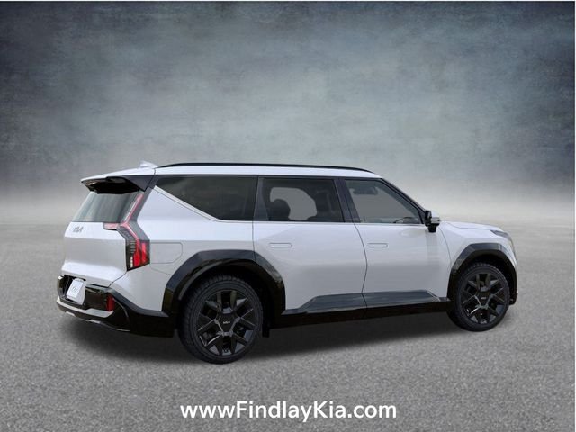 Welcome to Findlay Kia on Sahara Ave in Las Vegas. This EV9 is equipped with the following options: 7 Passenger Package, Nightfall Edition Package (Black Exterior Trim, Black Finish Exterior Emblems, and Black Headliner), 14 Speakers, 3rd row seats: split-bench, 4-Wheel Disc Brakes, ABS brakes, Air Conditioning, Alloy wheels, AM/FM radio: SiriusXM, Apple CarPlay & Android Auto, Auto High-beam Headlights, Auto-dimming door mirrors, Auto-dimming Rear-View mirror, Auto-leveling suspension, Automatic temperature control, Brake assist, Bumpers: body-color, Cargo Net, Delay-off headlights, Driver door bin, Driver vanity mirror, Dual front impact airbags, Dual front side impact airbags, Electronic Stability Control, Emergency communication system: 911 Connect, Exterior Parking Camera Rear, Four wheel independent suspension, Front anti-roll bar, Front Bucket Seats, Front Center Armrest w/Storage, Front dual zone A/C, Front reading lights, Fully automatic headlights, Garage door transmitter: HomeLink, Heated door mirrors, Heated front seats, Heated rear seats, Heated steering wheel, Illuminated entry, Knee airbag, Low tire pressure warning, Memory seat, Navigation System, Occupant sensing airbag, Outside temperature display, Overhead airbag, Overhead console, Panic alarm, Passenger door bin, Passenger vanity mirror, Power door mirrors, Power driver seat, Power Liftgate, Power moonroof, Power passenger seat, Power steering, Power windows, Radio data system, Rain sensing wipers, Rear air conditioning, Rear anti-roll bar, Rear reading lights, Rear seat center armrest, Rear window defroster, Rear window wiper, Reclining 3rd row seat, Remote keyless entry, Security system, Small First Aid Kit, Speed control, Speed-sensing steering, Split folding rear seat, Spoiler, Steering wheel memory, Steering wheel mounted audio controls, Telescoping steering wheel, Tilt steering wheel, Traction control, Trip computer, Turn signal indicator mirrors, Variably intermittent wipers, Ventilated front seats, Ventilated rear seats.
