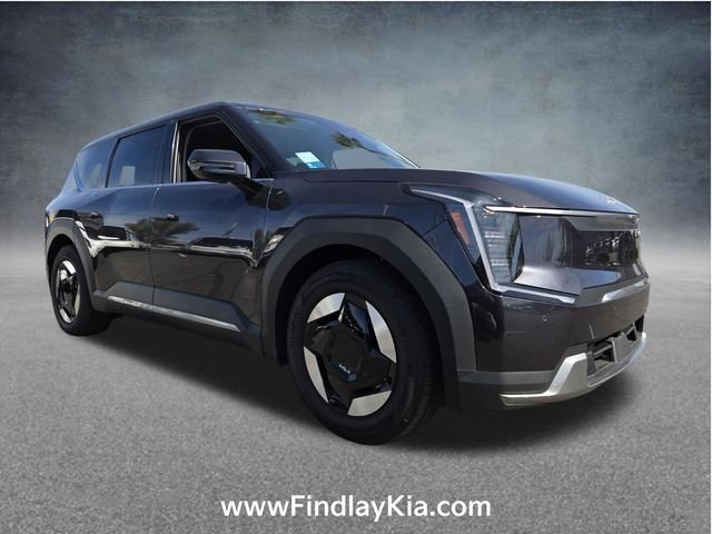 Welcome to Findlay Kia on Sahara Ave in Las Vegas. This EV9 is equipped with the following options: 3rd row seats: split-bench, 4-Wheel Disc Brakes, 8 Speakers, ABS brakes, Air Conditioning, Alloy wheels, AM/FM radio: SiriusXM, Apple CarPlay & Android Auto, Auto High-beam Headlights, Auto-dimming Rear-View mirror, Automatic temperature control, Brake assist, Bumpers: body-color, Cargo Net, Carpeted Floor Mat, 7-Passenger, Delay-off headlights, Driver door bin, Driver vanity mirror, Dual front impact airbags, Dual front side impact airbags, Electronic Stability Control, Emergency communication system: 911 Connect, Exterior Parking Camera Rear, Four wheel independent suspension, Front anti-roll bar, Front Bucket Seats, Front Center Armrest w/Storage, Front dual zone A/C, Front reading lights, Fully automatic headlights, Garage door transmitter: HomeLink, Heated door mirrors, Heated front seats, Illuminated entry, Knee airbag, Low tire pressure warning, Navigation System, Occupant sensing airbag, Outside temperature display, Overhead airbag, Overhead console, Panic alarm, Passenger door bin, Passenger vanity mirror, Power door mirrors, Power driver seat, Power Liftgate, Power moonroof, Power passenger seat, Power steering, Power windows, Radio data system, Rain sensing wipers, Rear air conditioning, Rear anti-roll bar, Rear reading lights, Rear seat center armrest, Rear window defroster, Rear window wiper, Reclining 3rd row seat, Remote keyless entry, Security system, Small First Aid Kit, Speed control, Speed-sensing steering, Split folding rear seat, Spoiler, Steering wheel mounted audio controls, Telescoping steering wheel, Tilt steering wheel, Traction control, Trip computer, Turn signal indicator mirrors, Variably intermittent wipers, and Ventilated front seats.