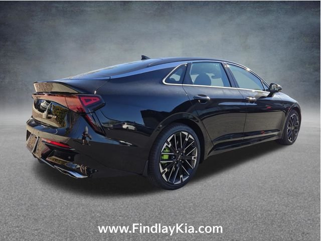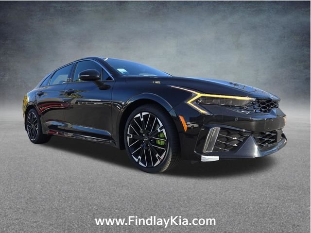Welcome to Findlay Kia on Sahara Ave in Las Vegas. This K5 is equipped with the following options: 4-Wheel Disc Brakes, 6 Speakers, ABS brakes, Air Conditioning, Alloy wheels, AM/FM radio: SiriusXM, Auto High-beam Headlights, Auto-Dimming Mirror with HomeLink, Automatic temperature control, Brake assist, Bumpers: body-color, Cargo Tray, Carpeted Floor Mats, Delay-off headlights, Driver door bin, Driver vanity mirror, Dual front impact airbags, Dual front side impact airbags, Electronic Stability Control, Emergency communication system: Kia Connect (includes 1 year free trial), Four wheel independent suspension, Front anti-roll bar, Front Bucket Seats, Front Center Armrest, Front dual zone A/C, Front fog lights, Front reading lights, Fully automatic headlights, Heated door mirrors, Heated front seats, Heated Sport Bucket Seats, Illuminated entry, Knee airbag, Leather Shift Knob, Leather steering wheel, Low tire pressure warning, Navigation System, Occupant sensing airbag, Outside temperature display, Overhead airbag, Overhead console, Panic alarm, Passenger door bin, Passenger vanity mirror, Power door mirrors, Power driver seat, Power moonroof, Power steering, Power windows, Radio data system, Radio: AM/FM Audio System, Rear anti-roll bar, Rear reading lights, Rear seat center armrest, Rear side impact airbag, Rear window defroster, Remote keyless entry, Security system, Small First Aid Kit, Speed control, Speed-sensing steering, Split folding rear seat, Sport steering wheel, Steering wheel mounted audio controls, SynTex Seat Trim, Tachometer, Telescoping steering wheel, Tilt steering wheel, Traction control, Trip computer, Turn signal indicator mirrors, Variably intermittent wipers, Wheel Locks, and Wheels: 19" x 8.0J Gloss Black Machined Finish Alloy.