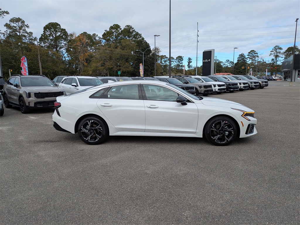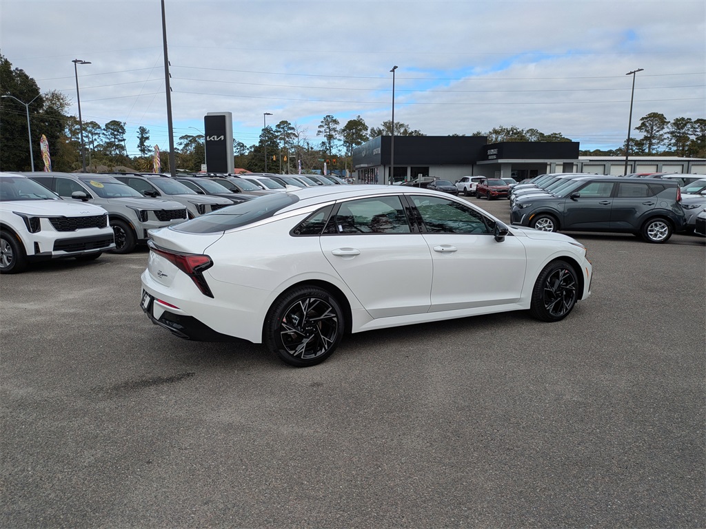 Snow White Pearl 2026 Kia K5 GT-Line I4 FWD 8-Speed Automatic GT-Line Red Interior Package (SynTex Seat Trim), 4-Wheel Disc Brakes, 6 Speakers, ABS brakes, Air Conditioning, Alloy wheels, AM/FM radio: SiriusXM, Auto High-beam Headlights, Automatic temperature control, Brake assist, Bumpers: body-color, Carpeted Floor Mats, Delay-off headlights, Driver door bin, Driver vanity mirror, Dual front impact airbags, Dual front side impact airbags, Electronic Stability Control, Emergency communication system: Kia Connect (includes 1 year free trial), Four wheel independent suspension, Front anti-roll bar, Front Bucket Seats, Front Center Armrest, Front dual zone A/C, Front fog lights, Front reading lights, Fully automatic headlights, Heated door mirrors, Heated Front Bucket Seats, Heated front seats, Heated steering wheel, Illuminated entry, Knee airbag, Leather Shift Knob, Leather steering wheel, Low tire pressure warning, Navigation System, Occupant sensing airbag, Outside temperature display, Overhead airbag, Overhead console, Panic alarm, Passenger door bin, Passenger vanity mirror, Power door mirrors, Power driver seat, Power steering, Power windows, Radio data system, Radio: AM/FM Audio System, Rear anti-roll bar, Rear seat center armrest, Rear side impact airbag, Rear window defroster, Remote keyless entry, Security system, Speed control, Speed-sensing steering, Split folding rear seat, Sport steering wheel, Steering wheel mounted audio controls, Tachometer, Telescoping steering wheel, Tilt steering wheel, Traction control, Trip computer, Turn signal indicator mirrors, Variably intermittent wipers, and Wheels: 18" x 7.5J Gloss Black Machined Finish Alloy.