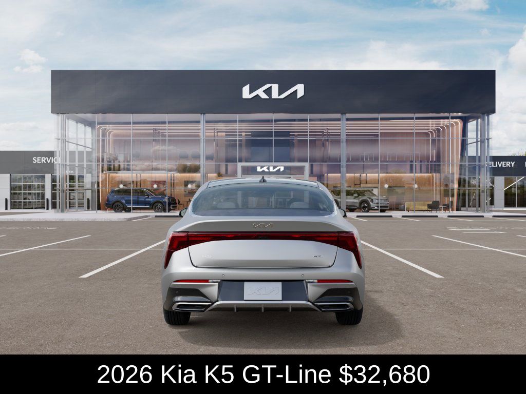 $1,000 off MSRP! Kia Store Elizabethtown is delighted to offer this charming 2026 Kia K5 GT-Line in Steel Matte Gray. Well equipped with: 4-Wheel Disc Brakes, 6 Speakers, ABS brakes, Air Conditioning, Alloy wheels, AM/FM radio: SiriusXM, Auto High-beam Headlights, Automatic temperature control, Brake assist, Bumpers: body-color, Delay-off headlights, Driver door bin, Driver vanity mirror, Dual front impact airbags, Dual front side impact airbags, Electronic Stability Control, Emergency communication system: Kia Connect (includes 1 year free trial), Four wheel independent suspension, Front anti-roll bar, Front Bucket Seats, Front Center Armrest, Front dual zone A/C, Front fog lights, Front reading lights, Fully automatic headlights, Heated door mirrors, Heated Front Bucket Seats, Heated front seats, Heated steering wheel, Illuminated entry, Knee airbag, Leather Shift Knob, Leather steering wheel, Low tire pressure warning, Navigation System, Occupant sensing airbag, Outside temperature display, Overhead airbag, Overhead console, Panic alarm, Passenger door bin, Passenger vanity mirror, Power door mirrors, Power driver seat, Power steering, Power windows, Radio data system, Radio: AM/FM Audio System, Rear anti-roll bar, Rear seat center armrest, Rear side impact airbag, Rear window defroster, Remote keyless entry, Security system, Speed control, Speed-sensing steering, Split folding rear seat, Sport steering wheel, Steering wheel mounted audio controls, Tachometer, Telescoping steering wheel, Tilt steering wheel, Traction control, Trip computer, Turn signal indicator mirrors, Variably intermittent wipers, and Wheels: 18" x 7.5J Gloss Black Machined Finish Alloy.