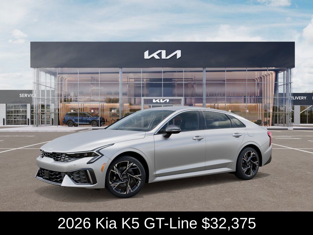 $1,000 off MSRP! Kia Store Elizabethtown is pumped up to offer this handsome-looking 2026 Kia K5 GT-Line in Steel Matte Gray. Well equipped with: 4-Wheel Disc Brakes, 6 Speakers, ABS brakes, Air Conditioning, Alloy wheels, AM/FM radio: SiriusXM, Apple CarPlay & Android Auto, Auto High-beam Headlights, Automatic temperature control, Brake assist, Bumpers: body-color, Delay-off headlights, Driver door bin, Driver vanity mirror, Dual front impact airbags, Dual front side impact airbags, Electronic Stability Control, Emergency communication system: Kia Connect (includes 1 year free trial), Four wheel independent suspension, Front anti-roll bar, Front Bucket Seats, Front Center Armrest, Front dual zone A/C, Front fog lights, Front reading lights, Fully automatic headlights, Heated door mirrors, Heated Front Bucket Seats, Heated front seats, Heated steering wheel, Illuminated entry, Knee airbag, Leather Shift Knob, Leather steering wheel, Low tire pressure warning, Navigation System, Occupant sensing airbag, Outside temperature display, Overhead airbag, Overhead console, Panic alarm, Passenger door bin, Passenger vanity mirror, Power door mirrors, Power driver seat, Power steering, Power windows, Radio data system, Radio: AM/FM Audio System, Rear anti-roll bar, Rear seat center armrest, Rear side impact airbag, Rear window defroster, Remote keyless entry, Security system, Speed control, Speed-sensing steering, Split folding rear seat, Sport steering wheel, Steering wheel mounted audio controls, Tachometer, Telescoping steering wheel, Tilt steering wheel, Traction control, Trip computer, Turn signal indicator mirrors, Variably intermittent wipers, and Wheels: 18" x 7.5J Gloss Black Machined Finish Alloy.