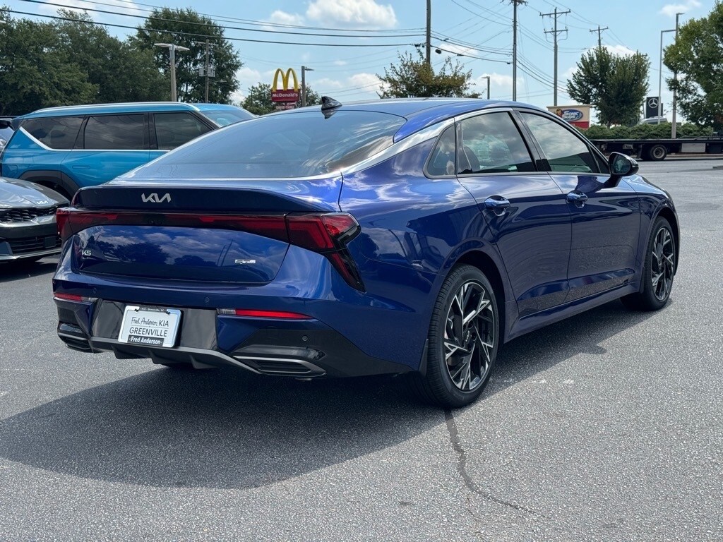 2026 Kia K5 GT-Line Yacht Blue 4-Wheel Disc Brakes, 6 Speakers, ABS brakes, Air Conditioning, Alloy wheels, AM/FM radio: SiriusXM, Apple CarPlay & Android Auto, Auto High-beam Headlights, Automatic temperature control, Brake assist, Bumpers: body-color, Cargo Mat, Cargo Net, Carpeted Floor Mats, Delay-off headlights, Driver door bin, Driver vanity mirror, Dual front impact airbags, Dual front side impact airbags, Electronic Stability Control, Emergency communication system: Kia Connect (includes 1 year free trial), Four wheel independent suspension, Front anti-roll bar, Front Bucket Seats, Front Center Armrest, Front dual zone A/C, Front fog lights, Front reading lights, Fully automatic headlights, Heated door mirrors, Heated Front Bucket Seats, Heated front seats, Heated steering wheel, Illuminated entry, Knee airbag, Leather Shift Knob, Leather steering wheel, Low tire pressure warning, Mud Guards, Navigation System, Occupant sensing airbag, Outside temperature display, Overhead airbag, Overhead console, Panic alarm, Passenger door bin, Passenger vanity mirror, Power door mirrors, Power driver seat, Power steering, Power windows, Radio data system, Radio: AM/FM Audio System, Rear anti-roll bar, Rear seat center armrest, Rear side impact airbag, Rear window defroster, Remote keyless entry, Security system, Speed control, Speed-sensing steering, Split folding rear seat, Sport steering wheel, Steering wheel mounted audio controls, Tachometer, Telescoping steering wheel, Tilt steering wheel, Traction control, Trip computer, Turn signal indicator mirrors, Variably intermittent wipers, Wheels: 18" x 7.5J Gloss Black Machined Finish Alloy. Thank you for checking out our website at www.KiaOfGreenville.com where we help you find the best vehicle that meets your needs wrapped in a deal you will not want to walk away from. If you have any questions please call us at 864-412-4061 or visit us in person at Fred Anderson Kia of Greenville located at 2424 Laurens Rd Greenville, SC 29607 to learn more! Qualifying New Vehicles bought and serviced here receive our FULL ANDERSON FAMILY PLAN at NO COST to YOU! Our full family plan includes: Peace of Mind 3-Day Vehicle Exchange*Lifetime Oil Changes*Service Loaners*Loyalty Discounts after 50,000 miles All prices exclude tax, tag, license, title, and registration for your state; and our admin ($499) fees. All vehicle internet pricing is subject to change and requires standard financing. From time to time in the transfer of data on the internet, there are errors. Dealer is not responsible for errors in advertised prices. See dealer for complete details.