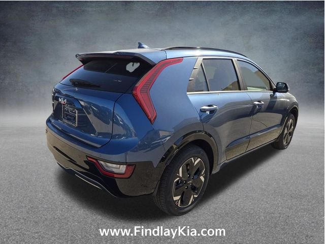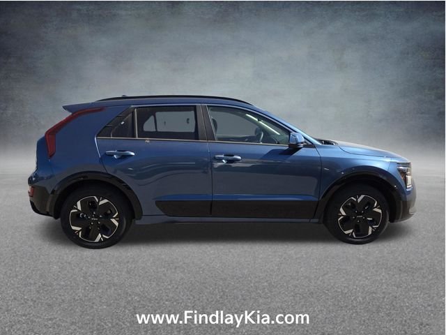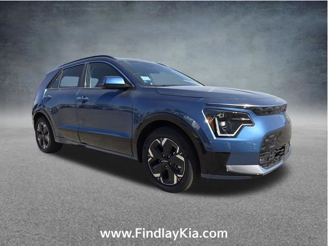 Welcome to Findlay Kia on Sahara Ave in Las Vegas. This Niro EV is equipped with the following options: 4-Wheel Disc Brakes, 8 Speakers, ABS brakes, Air Conditioning, Alloy wheels, AM/FM radio: SiriusXM, Apple CarPlay & Android Auto, Auto High-beam Headlights, Auto-dimming Rear-View mirror, Automatic temperature control, Brake assist, Delay-off headlights, Driver door bin, Driver vanity mirror, Dual front impact airbags, Dual front side impact airbags, Electronic Stability Control, Four wheel independent suspension, Front anti-roll bar, Front Bucket Seats, Front fog lights, Front reading lights, Fully automatic headlights, Garage door transmitter: HomeLink, harman/kardon Speakers, Heads-Up Display, Heated door mirrors, Heated front seats, Heated steering wheel, Illuminated entry, Knee airbag, Low tire pressure warning, Memory seat, Navigation System, Occupant sensing airbag, Outside temperature display, Overhead airbag, Overhead console, Panic alarm, Passenger door bin, Passenger vanity mirror, Power door mirrors, Power driver seat, Power Liftgate, Power moonroof, Power passenger seat, Power steering, Power windows, Rain sensing wipers, Rear anti-roll bar, Rear window defroster, Rear window wiper, Remote keyless entry, Security system, Speed control, Speed-sensing steering, Split folding rear seat, Spoiler, Steering wheel mounted audio controls, Telescoping steering wheel, Tilt steering wheel, Traction control, Trip computer, Turn signal indicator mirrors, Variably intermittent wipers, and Ventilated front seats.