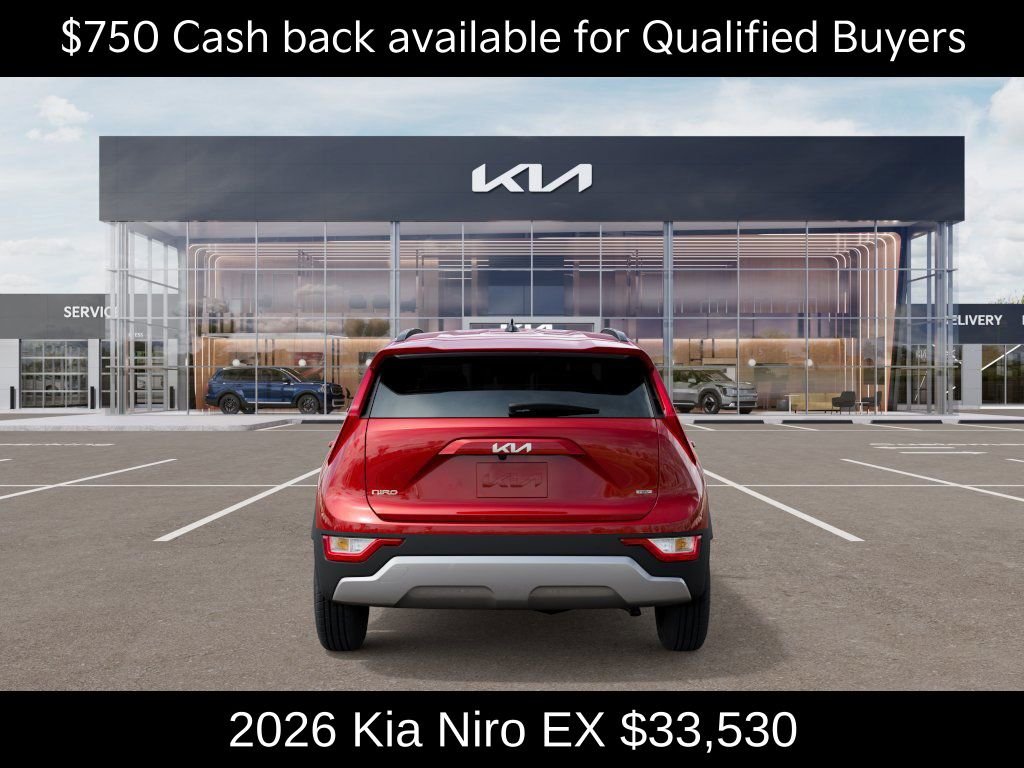 $750 off MSRP! Kia Store Elizabethtown is excited to offer this great 2026 Kia Niro EX in Runway Red. Well equipped with: 4-Wheel Disc Brakes, 6 Speakers, ABS brakes, Air Conditioning, Alloy wheels, AM/FM radio: SiriusXM, Apple CarPlay & Android Auto, Auto High-beam Headlights, Automatic temperature control, Brake assist, Bumpers: body-color, Cloth and Vegan Leather-Trimmed Seats, Delay-off headlights, Driver door bin, Driver vanity mirror, Dual front impact airbags, Dual front side impact airbags, Electronic Stability Control, Emergency communication system: Kia Connect (includes 1 year free trial), Exterior Parking Camera Rear, Four wheel independent suspension, Front anti-roll bar, Front Bucket Seats, Front Center Armrest, Front dual zone A/C, Front reading lights, Fully automatic headlights, Heated door mirrors, Heated Front Bucket Seats (3-Steps), Heated front seats, Illuminated entry, Knee airbag, Leather Shift Knob, Low tire pressure warning, Navigation System, Occupant sensing airbag, Outside temperature display, Overhead airbag, Overhead console, Panic alarm, Passenger door bin, Passenger vanity mirror, Power door mirrors, Power driver seat, Power Liftgate, Power steering, Power windows, Radio: AM/FM/HD/SiriusXM, Rain sensing wipers, Rear anti-roll bar, Rear seat center armrest, Rear window defroster, Rear window wiper, Remote keyless entry, Security system, Speed control, Speed-sensing steering, Split folding rear seat, Spoiler, Steering wheel mounted audio controls, Telescoping steering wheel, Tilt steering wheel, Traction control, Trip computer, Turn signal indicator mirrors, Variably intermittent wipers, and Wheels: 6.5J x 16" Aero Alloy. Price includes: $750 - KFA Dealer Choice Program: $750 discount and 5.25% APR for 36 months. $30.08 per $1000 financed. Available to well qualified buyers who finance through Kia Finance America. 506. Exp. 03/31/2026