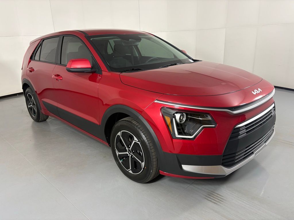 Runway Red 2026 Kia Niro LX FWD 6-Speed Dual Clutch 1.6L I4 DGI Hybrid DOHC 16V LEV3-SULEV30. 53/54 City/Highway MPG. Sales price is plus tax, title, license, and $599 Doc fee, and dealer installed accessories. All New & Used Courtesy vehicles come pre-equipped with Lifetime Window Tint for $499, providing 99% UV protection and long-term interior preservation. 360Shield Ceramic Coating is included for $399, offering durable exterior and interior protection. The CarRx GPS App adds connected driving and theft protection for $399, and Door Edge & Handle Cup Protection helps maintain a like-new appearance for $299. Nitrogen for Life is included.