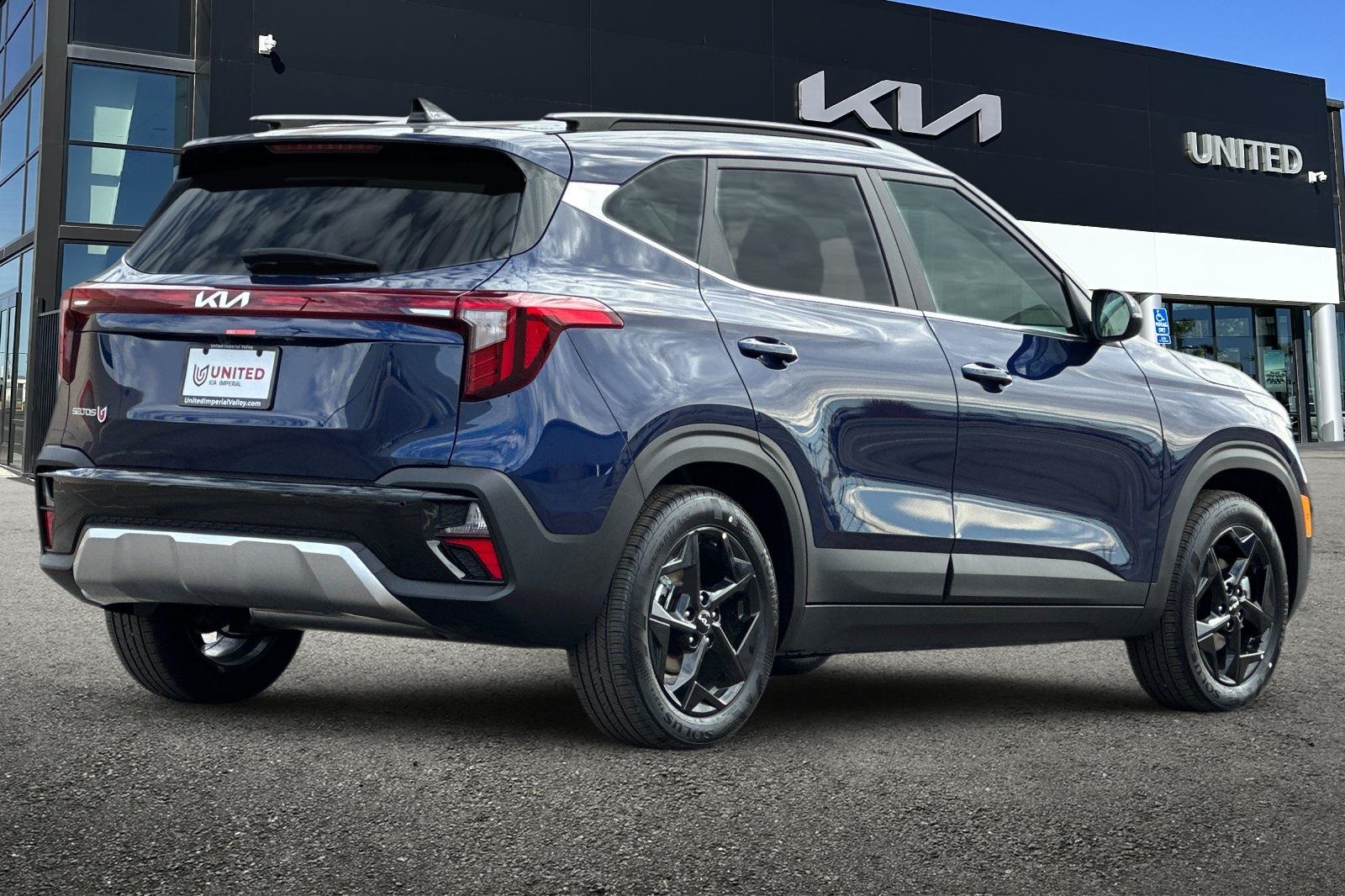 28/34 City/Highway MPG. 2026 Kia Seltos EX Dark Ocean Blue. EX Sunroof Package includes Power Sunroof and 17" Glossy Black Wheels. Gentle Brown interior color. 4-Wheel Disc Brakes, Apple CarPlay & Android Auto, Navigation System, Heated Front Bucket Seats, Leather steering wheel, and more.