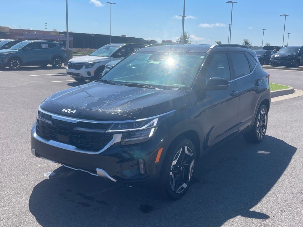 Seltos SX, 4D Sport Utility, AWD, Fusion Black, Black Artificial Leather, 4-Wheel Disc Brakes, 8 Speakers, Apple CarPlay & Android Auto, Artificial Leather Seat Trim, Automatic temperature control, Brake assist, Carpet Floor Mats, Digital Key, Electronic Stability Control, Exterior Parking Camera Rear, Four wheel independent suspension, Front fog lights, Fully automatic headlights, Heated door mirrors, Heated Front Bucket Seats (3-Steps), Heated front seats, Illuminated entry, Navigation System, Overhead console, Power Liftgate, Power Sunroof, Remote keyless entry, Security system, Spoiler, Sport steering wheel, Steering wheel mounted audio controls, SX Sunroof Package, Turn signal indicator mirrors, Ventilated Front Seats. Price does not include added accessories. Price includes: $1250 - KFA Dealer Choice Program: $1250 discount and 5.25% APR for 36 months. $30.08 per $1000 financed. Available to well qualified buyers who finance through Kia Finance America. 506. Exp. 03/31/2026.