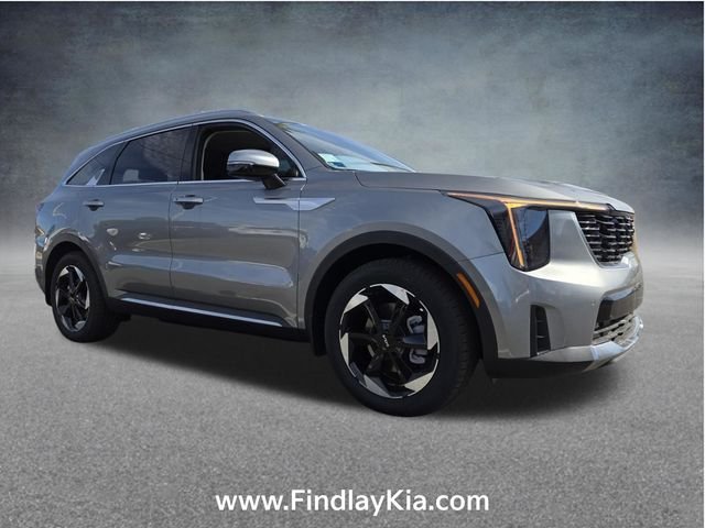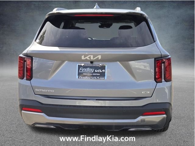 Welcome to Findlay Kia on Sahara Ave in Las Vegas. This Sorento Hybrid is equipped with the following options: EX Premium Package (2nd Row Captain's Chairs, LED Interior Lighting, and Radio: AM/FM Bose Premium Audio System), 1.6L Turbo GDI 4-Cylinder, 3rd row seats: split-bench, 4-Wheel Disc Brakes, 6 Speakers, ABS brakes, Air Conditioning, Alloy wheels, AM/FM radio: SiriusXM, Apple CarPlay & Android Auto, Auto High-beam Headlights, Auto-dimming Rear-View mirror, Automatic temperature control, Brake assist, Bumpers: body-color, Cargo Net, Carpeted Floor Mats, Delay-off headlights, Driver door bin, Driver vanity mirror, Dual front impact airbags, Dual front side impact airbags, Electronic Stability Control, Emergency communication system: 911 Connect, Exterior Parking Camera Rear, Four wheel independent suspension, Front anti-roll bar, Front Bucket Seats, Front Center Armrest, Front dual zone A/C, Front fog lights, Front reading lights, Fully automatic headlights, Heated door mirrors, Heated Front Bucket Seats, Heated front seats, Illuminated entry, Knee airbag, Leather steering wheel, Low tire pressure warning, Navigation System, Occupant sensing airbag, Outside temperature display, Overhead airbag, Overhead console, Panic alarm, Passenger door bin, Passenger vanity mirror, Power door mirrors, Power driver seat, Power Liftgate, Power passenger seat, Power steering, Power windows, Radio data system, Radio: AM/FM/SiriusXM Audio System, Rear anti-roll bar, Rear reading lights, Rear seat center armrest, Rear side impact airbag, Rear window defroster, Rear window wiper, Remote keyless entry, Security system, Speed control, Speed-sensing steering, Split folding rear seat, Spoiler, Steering wheel mounted audio controls, SynTex Artificial Leather Seat Trim, Tachometer, Telescoping steering wheel, Tilt steering wheel, Traction control, Trip computer, Turn signal indicator mirrors, Variably intermittent wipers, and Wheels: 19" Machine-Finished Aero Alloy.