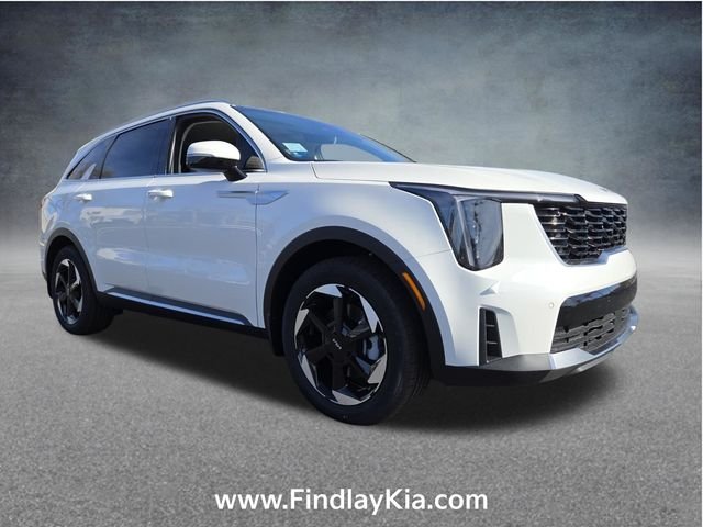 Welcome to Findlay Kia on Sahara Ave in Las Vegas. This Sorento Hybrid is equipped with the following options: EX Premium Package (2nd Row Captain's Chairs, LED Interior Lighting, and Radio: AM/FM Bose Premium Audio System), 1.6L Turbo GDI 4-Cylinder, 3rd row seats: split-bench, 4-Wheel Disc Brakes, 6 Speakers, ABS brakes, Air Conditioning, Alloy wheels, AM/FM radio: SiriusXM, Apple CarPlay & Android Auto, Auto High-beam Headlights, Auto-dimming Rear-View mirror, Automatic temperature control, Brake assist, Bumpers: body-color, Delay-off headlights, Driver door bin, Driver vanity mirror, Dual front impact airbags, Dual front side impact airbags, Electronic Stability Control, Emergency communication system: 911 Connect, Exterior Parking Camera Rear, Four wheel independent suspension, Front anti-roll bar, Front Bucket Seats, Front Center Armrest, Front dual zone A/C, Front fog lights, Front reading lights, Fully automatic headlights, Heated door mirrors, Heated Front Bucket Seats, Heated front seats, Illuminated entry, Knee airbag, Leather steering wheel, Low tire pressure warning, Navigation System, Occupant sensing airbag, Outside temperature display, Overhead airbag, Overhead console, Panic alarm, Passenger door bin, Passenger vanity mirror, Power door mirrors, Power driver seat, Power Liftgate, Power passenger seat, Power steering, Power windows, Radio data system, Radio: AM/FM/SiriusXM Audio System, Rear anti-roll bar, Rear reading lights, Rear seat center armrest, Rear side impact airbag, Rear window defroster, Rear window wiper, Remote keyless entry, Security system, Speed control, Speed-sensing steering, Split folding rear seat, Spoiler, Steering wheel mounted audio controls, SynTex Artificial Leather Seat Trim, Tachometer, Telescoping steering wheel, Tilt steering wheel, Traction control, Trip computer, Turn signal indicator mirrors, Variably intermittent wipers, and Wheels: 19" Machine-Finished Aero Alloy.