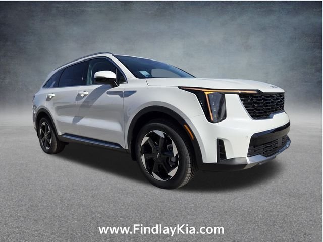 Welcome to Findlay Kia on Sahara Ave in Las Vegas. This Sorento Hybrid is equipped with the following options: 1.6L Turbo GDI 4-Cylinder, 3rd row seats: split-bench, 4-Wheel Disc Brakes, 6 Speakers, ABS brakes, Air Conditioning, Alloy wheels, AM/FM radio: SiriusXM, Apple CarPlay & Android Auto, Auto High-beam Headlights, Auto-dimming Rear-View mirror, Automatic temperature control, Brake assist, Bumpers: body-color, Delay-off headlights, Driver door bin, Driver vanity mirror, Dual front impact airbags, Dual front side impact airbags, Electronic Stability Control, Emergency communication system: 911 Connect, Exterior Parking Camera Rear, Four wheel independent suspension, Front anti-roll bar, Front Bucket Seats, Front Center Armrest, Front dual zone A/C, Front fog lights, Front reading lights, Fully automatic headlights, Heated door mirrors, Heated Front Bucket Seats, Heated front seats, Illuminated entry, Knee airbag, Leather steering wheel, Low tire pressure warning, Navigation System, Occupant sensing airbag, Outside temperature display, Overhead airbag, Overhead console, Panic alarm, Passenger door bin, Passenger vanity mirror, Power door mirrors, Power driver seat, Power Liftgate, Power passenger seat, Power steering, Power windows, Radio data system, Radio: AM/FM/SiriusXM Audio System, Rear anti-roll bar, Rear reading lights, Rear seat center armrest, Rear side impact airbag, Rear window defroster, Rear window wiper, Remote keyless entry, Security system, Speed control, Speed-sensing steering, Split folding rear seat, Spoiler, Steering wheel mounted audio controls, SynTex Artificial Leather Seat Trim, Tachometer, Telescoping steering wheel, Tilt steering wheel, Traction control, Trip computer, Turn signal indicator mirrors, Variably intermittent wipers, and Wheels: 19" Machine-Finished Aero Alloy.
