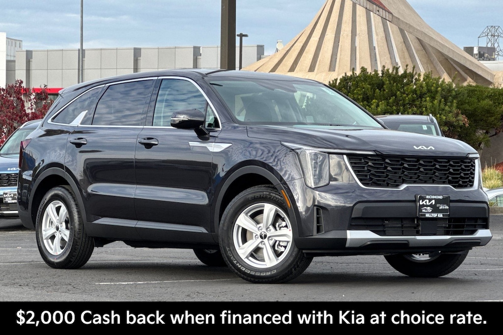 Panthera Metal 2026 Kia Sorento LX FWD 8-Speed Automatic 2.5L I4 DGI DOHC 16V LEV3-SULEV30 191hp. Recent Arrival! 23/31 City/Highway MPG Price includes: $2000 - KFA Dealer Choice Program: $2000 discount and 5.25% APR for 36 months. $30.08 per $1000 financed. Available to well qualified buyers who finance through Kia Finance America. 506. Exp. 01/02/2026. Peace of mind. Factory warranty. 60 months/60,000miles from the vehicle's original in-service date. A name you can trust. Hilltop Kia is dedicated to your satisfaction before, during, and after your purchase. We'll go the extra mile to take care of you.