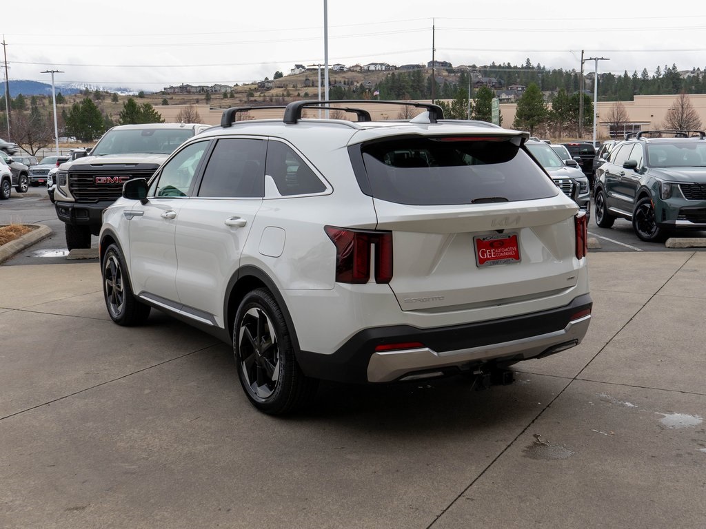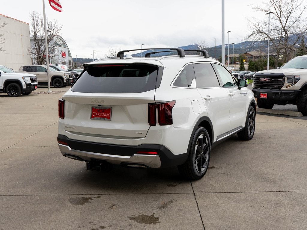 Snow White Pearl 2026 Kia Sorento Plug-In Hybrid EX AWD 6-Speed Automatic 1.6L I4 DGI Hybrid Turbocharged DOHC 16V LEV3-SULEV30 1.6L I4 DGI Hybrid Turbocharged DOHC 16V LEV3-SULEV30, 2nd Row Captain's Chairs, 3rd row seats: split-bench, 4-Wheel Disc Brakes, 6 Speakers, ABS brakes, Air Conditioning, All Weather Floor Mats, Alloy wheels, AM/FM radio: SiriusXM, Apple CarPlay & Android Auto, Auto High-beam Headlights, Auto-dimming Rear-View mirror, Automatic temperature control, Brake assist, Bumpers: body-color, Cargo Tray, Cross Bars, Delay-off headlights, Driver door bin, Driver vanity mirror, Dual front impact airbags, Dual front side impact airbags, Electronic Stability Control, Emergency communication system: 911 Connect, EX Premium Package, Exterior Parking Camera Rear, Four wheel independent suspension, Front anti-roll bar, Front Bucket Seats, Front Center Armrest, Front dual zone A/C, Front fog lights, Front reading lights, Fully automatic headlights, Heated door mirrors, Heated Front Bucket Seats, Heated front seats, Illuminated entry, Knee airbag, Leather steering wheel, LED Interior Lighting, Low tire pressure warning, Navigation System, Occupant sensing airbag, Outside temperature display, Overhead airbag, Overhead console, Panic alarm, Passenger door bin, Passenger vanity mirror, Power door mirrors, Power driver seat, Power Liftgate, Power passenger seat, Power steering, Power Sunroof w/Power Sunshade, Power windows, Radio data system, Radio: AM/FM Bose Premium Audio System, Radio: AM/FM/SiriusXM Audio System, Rear anti-roll bar, Rear reading lights, Rear seat center armrest, Rear side impact airbag, Rear window defroster, Rear window wiper, Remote keyless entry, Security system, Speed control, Speed-sensing steering, Split folding rear seat, Spoiler, Steering wheel mounted audio controls, SynTex Artificial Leather Seat Trim, Tachometer, Telescoping steering wheel, Tilt steering wheel, Tow Hitch (PnP), Traction control, Trip computer, Turn signal indicator mirrors, Variably intermittent wipers, Wheels: 19" Machine-Finished Aero Alloy. Price includes $3000 - KFA Dealer Choice Program and $30.08 per $1000 financed. Available to well qualified buyers who finance through Kia Finance America.
