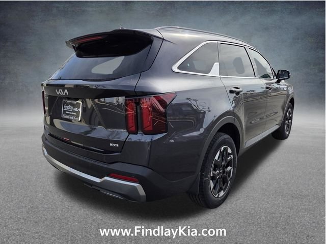 Welcome to Findlay Kia on Sahara Ave in Las Vegas. This Sorento is equipped with the following options: S Panoramic Sunroof Package (LED Interior Lighting), AWD, 3rd row seats: split-bench, 4-Wheel Disc Brakes, 6 Speakers, ABS brakes, Air Conditioning, Alloy wheels, AM/FM radio: SiriusXM, Apple CarPlay & Android Auto, Auto High-beam Headlights, Automatic temperature control, Brake assist, Bumpers: body-color, Delay-off headlights, Driver door bin, Driver vanity mirror, Dual front impact airbags, Dual front side impact airbags, Electronic Stability Control, Emergency communication system: 911 Connect, Exterior Parking Camera Rear, Four wheel independent suspension, Front anti-roll bar, Front Bucket Seats, Front Center Armrest, Front dual zone A/C, Front reading lights, Fully automatic headlights, Heated door mirrors, Heated Front Bucket Seats, Heated front seats, Illuminated entry, Knee airbag, Leather Shift Knob, Leather steering wheel, Low tire pressure warning, Occupant sensing airbag, Outside temperature display, Overhead airbag, Overhead console, Panic alarm, Passenger door bin, Passenger vanity mirror, Power door mirrors, Power driver seat, Power steering, Power windows, Radio data system, Radio: AM/FM Standard Sound System, Rear anti-roll bar, Rear reading lights, Rear seat center armrest, Rear side impact airbag, Rear window defroster, Rear window wiper, Remote keyless entry, Security system, Speed control, Speed-sensing steering, Split folding rear seat, Spoiler, Steering wheel mounted audio controls, SynTex Artificial Leather Seat Trim, Tachometer, Telescoping steering wheel, Tilt steering wheel, Traction control, Trip computer, Turn signal indicator mirrors, Variably intermittent wipers, and Wheels: 18" Gloss Black Alloy. AWD. 23/28 City/Highway MPG This Sorento is equipped with Bluetooth, Backup Camera, along with the following options: Price includes: $2500 - Kia Customer Cash. Exp. 03/31/2026