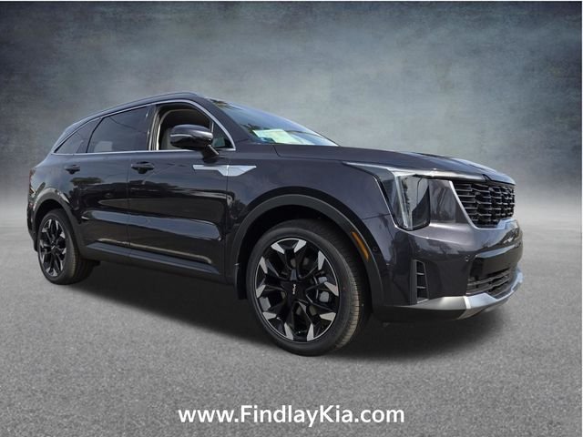 Welcome to Findlay Kia on Sahara Ave in Las Vegas. This Sorento is equipped with the following options: 12 Speakers, 3rd row seats: split-bench, 4-Wheel Disc Brakes, ABS brakes, Air Conditioning, Alloy wheels, AM/FM radio: SiriusXM, Apple CarPlay & Android Auto, Auto High-beam Headlights, Auto-dimming Rear-View mirror, Automatic temperature control, Brake assist, Bumpers: body-color, Delay-off headlights, Driver door bin, Driver vanity mirror, Dual front impact airbags, Dual front side impact airbags, Electronic Stability Control, Emergency communication system: 911 Connect, Exterior Parking Camera Rear, Four wheel independent suspension, Front anti-roll bar, Front Bucket Seats, Front Center Armrest, Front dual zone A/C, Front fog lights, Front reading lights, Fully automatic headlights, Garage door transmitter: HomeLink, Heated and Ventilated Front Bucket Seats, Heated door mirrors, Heated front seats, Heated steering wheel, Illuminated entry, Knee airbag, Leather Shift Knob, Leather steering wheel, Low tire pressure warning, Navigation System, Occupant sensing airbag, Outside temperature display, Overhead airbag, Overhead console, Panic alarm, Passenger door bin, Passenger vanity mirror, Power door mirrors, Power driver seat, Power Liftgate, Power moonroof, Power passenger seat, Power steering, Power windows, Radio data system, Radio: AM/FM Bose Premium Audio System, Rain sensing wipers, Rear anti-roll bar, Rear reading lights, Rear side impact airbag, Rear window defroster, Rear window wiper, Remote keyless entry, Security system, Speed control, Speed-sensing steering, Split folding rear seat, Spoiler, Steering wheel mounted audio controls.