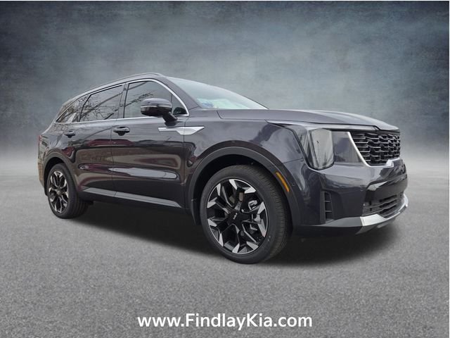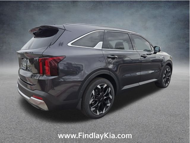 Welcome to Findlay Kia on Sahara Ave in Las Vegas. This Sorento is equipped with the following options: 12 Speakers, 3rd row seats: split-bench, 4-Wheel Disc Brakes, ABS brakes, Air Conditioning, Alloy wheels, AM/FM radio: SiriusXM, Apple CarPlay & Android Auto, Auto High-beam Headlights, Auto-dimming Rear-View mirror, Automatic temperature control, Brake assist, Bumpers: body-color, Cargo Net, Chrome Wheel Locks, Delay-off headlights, Driver door bin, Driver vanity mirror, Dual front impact airbags, Dual front side impact airbags, Electronic Stability Control, Emergency communication system: 911 Connect, Exterior Parking Camera Rear, Four wheel independent suspension, Front anti-roll bar, Front Bucket Seats, Front Center Armrest, Front dual zone A/C, Front fog lights, Front reading lights, Fully automatic headlights, Garage door transmitter: HomeLink, Heated door mirrors, Heated front seats, Heated steering wheel, Illuminated entry, Knee airbag, Leather Shift Knob, Leather steering wheel, Low tire pressure warning, Navigation System, Occupant sensing airbag, Outside temperature display, Overhead airbag, Overhead console, Panic alarm, Passenger door bin, Passenger vanity mirror, Power door mirrors, Power driver seat, Power Liftgate, Power moonroof, Power passenger seat, Power steering, Power windows, Radio data system, Radio: AM/FM Bose Premium Audio System, Rain sensing wipers, Rear anti-roll bar, Rear reading lights, Rear side impact airbag, Rear window defroster, Rear window wiper, Remote keyless entry, Security system, Small First Aid Kit, Speed control, Speed-sensing steering, Split folding rear seat, Spoiler, Steering wheel mounted audio controls.