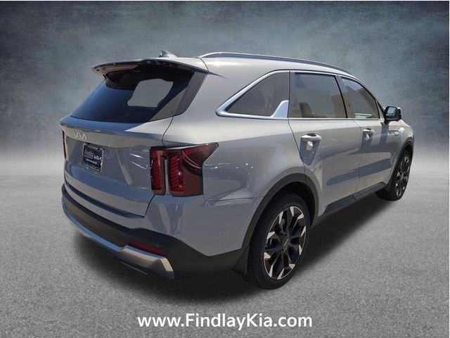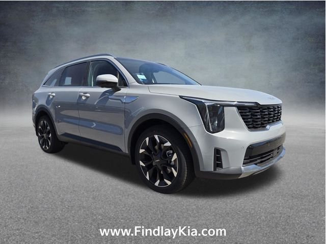 Welcome to Findlay Kia on Sahara Ave in Las Vegas. This Sorento is equipped with the following options: 12 Speakers, 3rd row seats: split-bench, 4-Wheel Disc Brakes, ABS brakes, Air Conditioning, Alloy wheels, AM/FM radio: SiriusXM, Apple CarPlay & Android Auto, Auto High-beam Headlights, Auto-dimming Rear-View mirror, Automatic temperature control, Brake assist, Bumpers: body-color, Delay-off headlights, Driver door bin, Driver vanity mirror, Dual front impact airbags, Dual front side impact airbags, Electronic Stability Control, Emergency communication system: 911 Connect, Exterior Parking Camera Rear, Four wheel independent suspension, Front anti-roll bar, Front Bucket Seats, Front Center Armrest, Front dual zone A/C, Front fog lights, Front reading lights, Fully automatic headlights, Garage door transmitter: HomeLink, Heated and Ventilated Front Bucket Seats, Heated door mirrors, Heated front seats, Heated steering wheel, Illuminated entry, Knee airbag, Leather Shift Knob, Leather steering wheel, Low tire pressure warning, Navigation System, Occupant sensing airbag, Outside temperature display, Overhead airbag, Overhead console, Panic alarm, Passenger door bin, Passenger vanity mirror, Power door mirrors, Power driver seat, Power Liftgate, Power moonroof, Power passenger seat, Power steering, Power windows, Radio data system, Radio: AM/FM Bose Premium Audio System, Rain sensing wipers, Rear anti-roll bar, Rear reading lights, Rear side impact airbag, Rear window defroster, Rear window wiper, Remote keyless entry, Security system, Speed control, Speed-sensing steering, Split folding rear seat, Spoiler, Steering wheel mounted audio controls, SynTex Artificial Leather Seat Trim, Tachometer, Telescoping steering wheel, Tilt steering wheel, Traction control, Trip computer, Turn signal indicator mirrors, Variably intermittent wipers, Ventilated front seats.