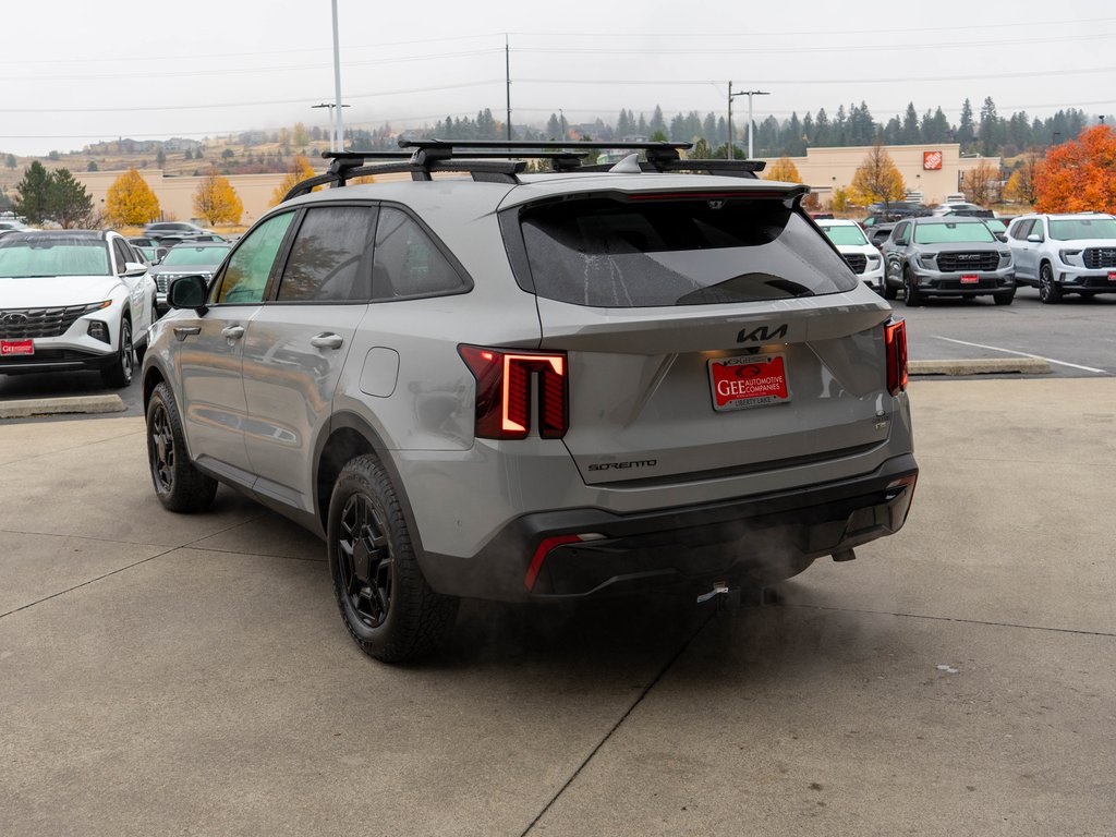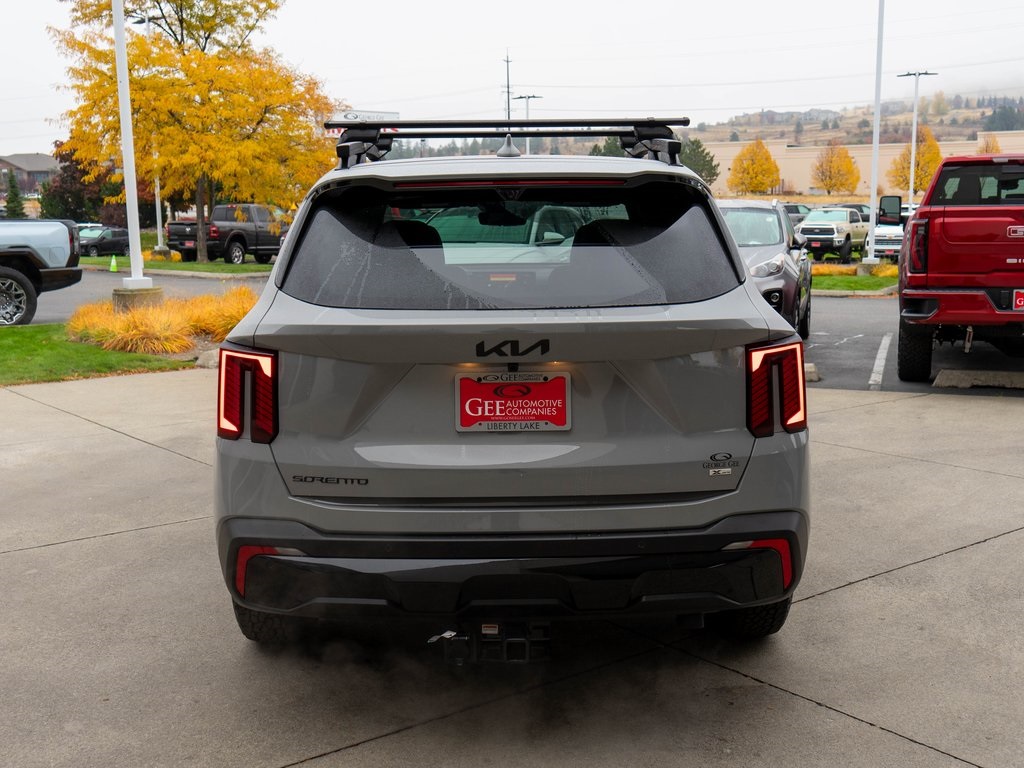 Wolf Gray 2026 Kia Sorento X-Pro SX Prestige AWD 8 Speed Dual Clutch 2.5L I4 DGI Turbocharged DOHC 16V LEV3-SULEV30 281hp AWD, 12 Speakers, 3rd row seats: split-bench, 4-Wheel Disc Brakes, ABS brakes, Air Conditioning, All Weather Floor Mats, Alloy wheels, AM/FM radio: SiriusXM, Apple CarPlay & Android Auto, Auto High-beam Headlights, Auto-dimming Rear-View mirror, Automatic temperature control, Brake assist, Bumpers: body-color, Cross Bars X-Line, Delay-off headlights, Driver door bin, Driver vanity mirror, Dual front impact airbags, Dual front side impact airbags, Electronic Stability Control, Emergency communication system: 911 Connect, Exterior Parking Camera Rear, Four wheel independent suspension, Front anti-roll bar, Front Bucket Seats, Front Center Armrest, Front dual zone A/C, Front fog lights, Front reading lights, Fully automatic headlights, Garage door transmitter: HomeLink, Heated & Ventilated Front Bucket Seats, Heated door mirrors, Heated front seats, Heated rear seats, Heated steering wheel, Illuminated entry, Knee airbag, Leather Shift Knob, Leather steering wheel, Low tire pressure warning, Memory seat, Navigation System, Occupant sensing airbag, Outside temperature display, Overhead airbag, Overhead console, Panic alarm, Passenger door bin, Passenger vanity mirror, Perforated Genuine Leather Seat Trim, Power door mirrors, Power driver seat, Power Liftgate, Power moonroof, Power passenger seat, Power steering, Power windows, Radio data system, Radio: AM/FM Bose Premium Audio System, Rain sensing wipers, Rear anti-roll bar, Rear reading lights, Rear side impact airbag, Rear window defroster, Rear window wiper, Remote keyless entry, Security system, Speed control, Speed-sensing steering, Split folding rear seat, Spoiler, Steering wheel mounted audio controls, Tachometer, Telescoping steering wheel, Tilt steering wheel, Tow Hitch, Traction control, Trip computer, Turn signal indicator mirrors, Variably intermittent wipers, Ventilated front seats, Wheels: 17" Gloss Black Alloy.