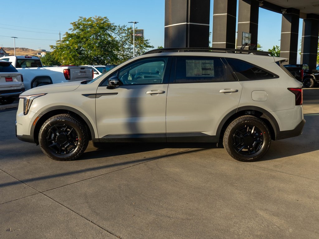 Wolf Gray 2026 Kia Sorento X-Pro SX Prestige AWD 8 Speed Dual Clutch 2.5L I4 DGI Turbocharged DOHC 16V LEV3-SULEV30 281hp AWD, 12 Speakers, 3rd row seats: split-bench, 4-Wheel Disc Brakes, ABS brakes, Air Conditioning, All Weather Floor Mats, Alloy wheels, AM/FM radio: SiriusXM, Apple CarPlay & Android Auto, Auto High-beam Headlights, Auto-dimming Rear-View mirror, Automatic temperature control, Brake assist, Bumpers: body-color, Delay-off headlights, Driver door bin, Driver vanity mirror, Dual front impact airbags, Dual front side impact airbags, Electronic Stability Control, Emergency communication system: 911 Connect, Exterior Parking Camera Rear, Four wheel independent suspension, Front anti-roll bar, Front Bucket Seats, Front Center Armrest, Front dual zone A/C, Front fog lights, Front reading lights, Fully automatic headlights, Garage door transmitter: HomeLink, Heated & Ventilated Front Bucket Seats, Heated door mirrors, Heated front seats, Heated rear seats, Heated steering wheel, Illuminated entry, Knee airbag, Leather Shift Knob, Leather steering wheel, Low tire pressure warning, Memory seat, Navigation System, Occupant sensing airbag, Olive Brown Leather Package, Outside temperature display, Overhead airbag, Overhead console, Panic alarm, Passenger door bin, Passenger vanity mirror, Perforated Genuine Leather Seat Trim, Power door mirrors, Power driver seat, Power Liftgate, Power moonroof, Power passenger seat, Power steering, Power windows, Radio data system, Radio: AM/FM Bose Premium Audio System, Rain sensing wipers, Rear anti-roll bar, Rear reading lights, Rear side impact airbag, Rear window defroster, Rear window wiper, Remote keyless entry, Security system, Speed control, Speed-sensing steering, Split folding rear seat, Spoiler, Steering wheel mounted audio controls, Tachometer, Telescoping steering wheel, Tilt steering wheel, Traction control, Trip computer, Turn signal indicator mirrors, Variably intermittent wipers, Ventilated front seats, Wheels: 17" Gloss Black Alloy.
