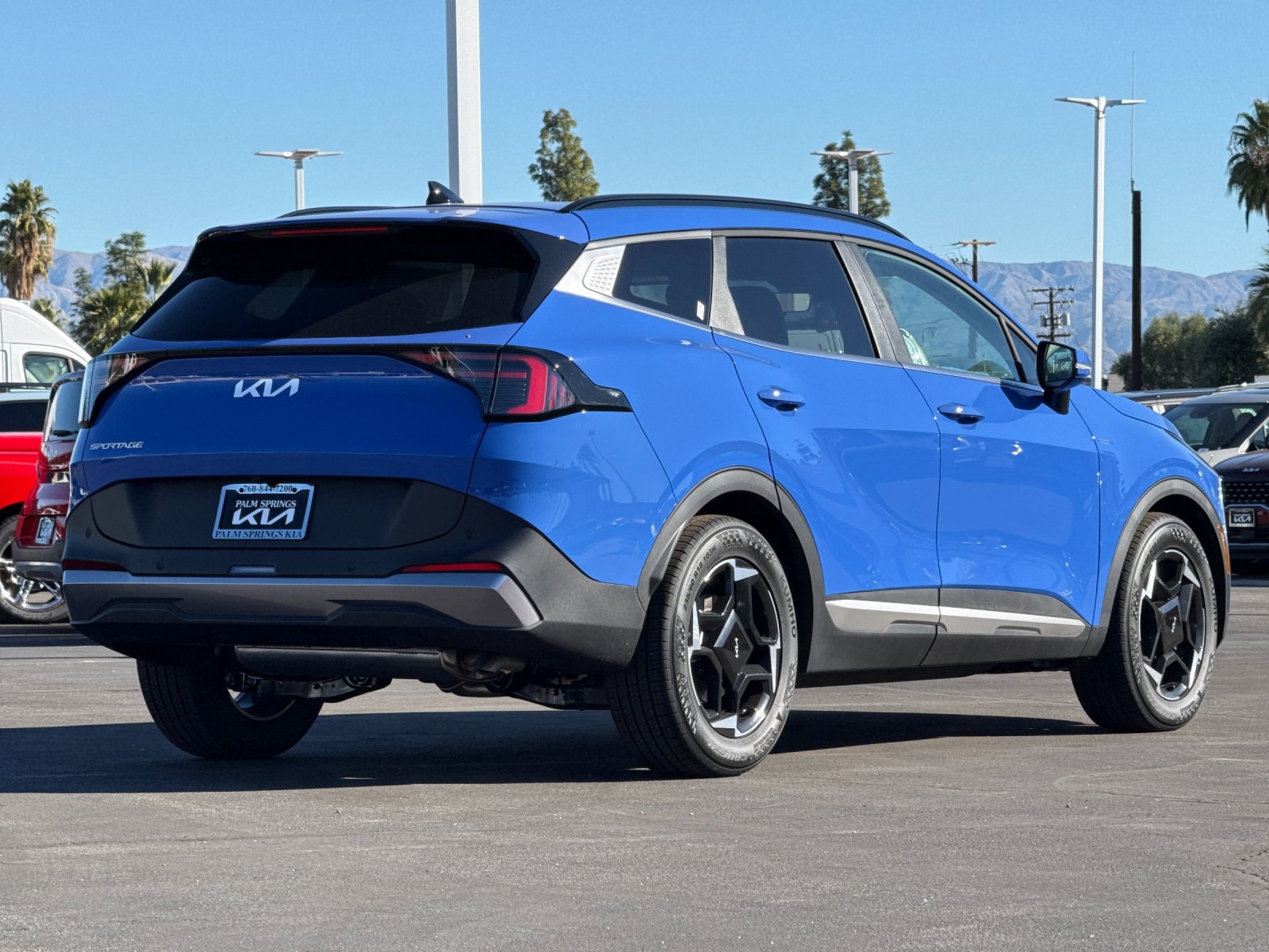 Palm Springs Kia The Original Desert Kia Dealership where we value your time and and business! Whether you are shopping for a new vehicle or servicing your current vehicle, we offer an unique relaxed atmosphere where kids and family, too, will enjoy our amenities like wifi, children's play area "high grade" coffee machine, bottled water and plenty of comfortable seating! Nebular Blue 2026 Kia Sportage EX FWD 8-Speed Automatic I4 25/33 City/Highway MPG