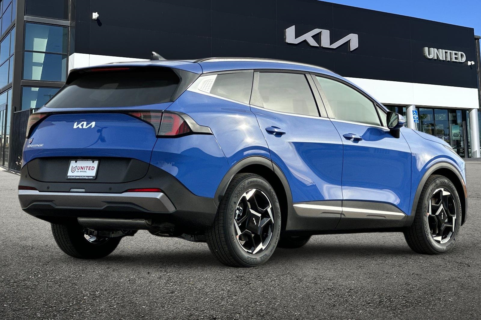 25/33 City/Highway MPG. 2026 Kia Sportage EX Nebular Blue. EX Panorama Roof Package (LED Interior Lighting, Panoramic Sunroof, and Roof Rails), 18" x 7.5J Alloy Wheels, 4-Wheel Disc Brakes, 6 Speakers, ABS brakes, Air Conditioning, Alloy wheels, Auto High-beam Headlights, Automatic temperature control, Brake assist, Bumpers: body-color, Cargo Cover, Carpeted Floor Mats, Delay-off headlights, Driver door bin, Driver vanity mirror, Dual front impact airbags, Dual front side impact airbags, Electronic Stability Control, Emergency communication system: Kia Connect (includes 1 year free trial), Four wheel independent suspension, Front anti-roll bar, Front Bucket Seats, Front Center Armrest, Front dual zone A/C, Fully automatic headlights, Heated door mirrors, Heated Front Bucket Seats, Heated front seats, Illuminated entry, Leather Shift Knob, Leather steering wheel, Low tire pressure warning, Occupant sensing airbag, Outside temperature display, Overhead airbag, Overhead console, Panic alarm, Passenger door bin, Passenger vanity mirror, Power door mirrors, Power driver seat, Power Liftgate, Power steering, Power windows, Radio: AM/FM/HD Audio System, Rain sensing wipers, Rear anti-roll bar, Rear seat center armrest, Rear side impact airbag, Rear window defroster, Rear window wiper, Remote keyless entry, Security system, Speed control, Speed-sensing steering, Split folding rear seat, Spoiler, Steering wheel mounted audio controls, Syntex Leatherette Seat Trim, Tachometer, Telescoping steering wheel, Tilt steering wheel, Traction control, Trip computer, Turn signal indicator mirrors, and Variably intermittent wipers.