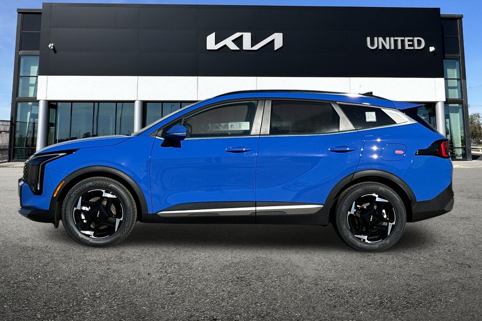 25/33 City/Highway MPG. 2026 Kia Sportage EX Nebular Blue. EX Panorama Roof Package (LED Interior Lighting, Panoramic Sunroof, and Roof Rails), 18" x 7.5J Alloy Wheels, 4-Wheel Disc Brakes, 6 Speakers, ABS brakes, Air Conditioning, Alloy wheels, Auto High-beam Headlights, Automatic temperature control, Brake assist, Bumpers: body-color, Cargo Cover, Carpeted Floor Mats, Delay-off headlights, Driver door bin, Driver vanity mirror, Dual front impact airbags, Dual front side impact airbags, Electronic Stability Control, Emergency communication system: Kia Connect (includes 1 year free trial), Four wheel independent suspension, Front anti-roll bar, Front Bucket Seats, Front Center Armrest, Front dual zone A/C, Fully automatic headlights, Heated door mirrors, Heated Front Bucket Seats, Heated front seats, Illuminated entry, Leather Shift Knob, Leather steering wheel, Low tire pressure warning, Occupant sensing airbag, Outside temperature display, Overhead airbag, Overhead console, Panic alarm, Passenger door bin, Passenger vanity mirror, Power door mirrors, Power driver seat, Power Liftgate, Power steering, Power windows, Radio: AM/FM/HD Audio System, Rain sensing wipers, Rear anti-roll bar, Rear seat center armrest, Rear side impact airbag, Rear window defroster, Rear window wiper, Remote keyless entry, Security system, Speed control, Speed-sensing steering, Split folding rear seat, Spoiler, Steering wheel mounted audio controls, Syntex Leatherette Seat Trim, Tachometer, Telescoping steering wheel, Tilt steering wheel, Traction control, Trip computer, Turn signal indicator mirrors, and Variably intermittent wipers.