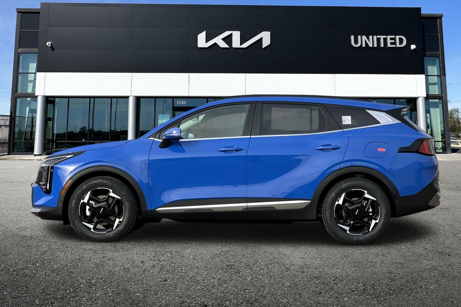 25/33 City/Highway MPG. 2026 Kia Sportage EX Nebular Blue. EX Panorama Roof Package (LED Interior Lighting, Panoramic Sunroof, and Roof Rails), 18" x 7.5J Alloy Wheels, 4-Wheel Disc Brakes, 6 Speakers, ABS brakes, Air Conditioning, Alloy wheels, Auto High-beam Headlights, Automatic temperature control, Brake assist, Bumpers: body-color, Cargo Cover, Carpeted Floor Mats, Delay-off headlights, Driver door bin, Driver vanity mirror, Dual front impact airbags, Dual front side impact airbags, Electronic Stability Control, Emergency communication system: Kia Connect (includes 1 year free trial), Four wheel independent suspension, Front anti-roll bar, Front Bucket Seats, Front Center Armrest, Front dual zone A/C, Fully automatic headlights, Heated door mirrors, Heated Front Bucket Seats, Heated front seats, Illuminated entry, Leather Shift Knob, Leather steering wheel, Low tire pressure warning, Occupant sensing airbag, Outside temperature display, Overhead airbag, Overhead console, Panic alarm, Passenger door bin, Passenger vanity mirror, Power door mirrors, Power driver seat, Power Liftgate, Power steering, Power windows, Radio: AM/FM/HD Audio System, Rain sensing wipers, Rear anti-roll bar, Rear seat center armrest, Rear side impact airbag, Rear window defroster, Rear window wiper, Remote keyless entry, Security system, Speed control, Speed-sensing steering, Split folding rear seat, Spoiler, Steering wheel mounted audio controls, Syntex Leatherette Seat Trim, Tachometer, Telescoping steering wheel, Tilt steering wheel, Traction control, Trip computer, Turn signal indicator mirrors, and Variably intermittent wipers.