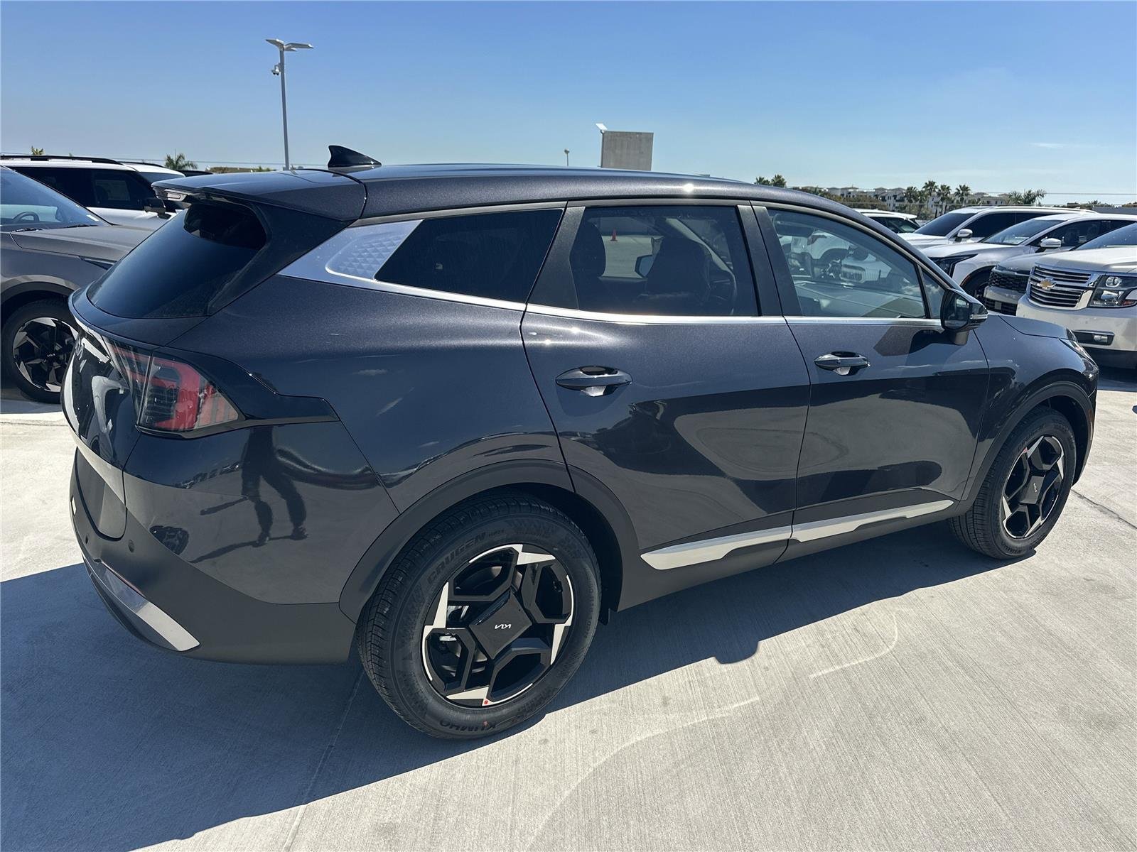 This 2026 Kia Sportage EX has a Panthera Metal exterior and Black interior. 4 no miles. Heated seats offer cool weather comfort by warming the seat quickly, before the air in the passenger compartment is fully warmed by the heater. This "intelligent" cruise control system maintains a preset following distance behind another vehicle, automatically braking (to a complete stop if needed) or accelerating as required. Cruise control maintains a preset vehicle speed; automatically increasing or decreasing throttle to maintain that speed. Access to the cargo area is gained via a large, power-operated rear door that opens upwards. This door may also contain the rear windshield of the vehicle. The vehicle constantly monitors the roadway in front of the vehicle and identifies and tracks pedestrians on an interior display. If the system determines a likely impact, it will automatically take preventative steps to avoid hitting the pedestrian. The vehicle is equipped with a camera that displays an image of the area behind the vehicle on an interior display. An active lane departure system alerts the driver of unintended movement of the vehicle out of a designated traffic lane and automatically maintains the vehicle's position within that lane. The vehicle is equipped with a system that senses, and then prepares, the vehicle and/or occupants, for an impending rear collision. Brake assist senses panic braking from the speed of the brake pedal's travel and applies all available power brake boost. Wireless Apple CarPlay & Android Auto smart device wireless mirroring.