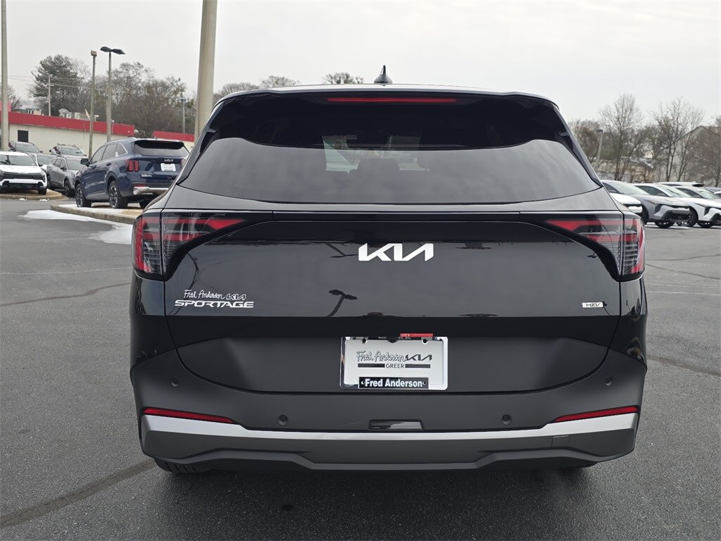 2026 Kia Sportage Hybrid LX Black 4-Wheel Disc Brakes, 6 Speakers, ABS brakes, Air Conditioning, Alloy wheels, AM/FM radio, Auto High-beam Headlights, Automatic temperature control, Brake assist, Bumpers: body-color, Cloth Seat Trim, Delay-off headlights, Driver door bin, Driver vanity mirror, Dual front impact airbags, Dual front side impact airbags, Electronic Stability Control, Emergency communication system, Four wheel independent suspension, Front anti-roll bar, Front Bucket Seats, Front Center Armrest, Front dual zone A/C, Fully automatic headlights, Illuminated entry, Leather steering wheel, Low tire pressure warning, Occupant sensing airbag, Outside temperature display, Overhead airbag, Overhead console, Panic alarm, Passenger door bin, Passenger vanity mirror, Power door mirrors, Power steering, Power windows, Radio: AM/FM/HD Audio System, Rain sensing wipers, Rear anti-roll bar, Rear seat center armrest, Rear side impact airbag, Rear window defroster, Rear window wiper, Remote keyless entry, Security system, Speed control, Speed-sensing steering, Split folding rear seat, Spoiler, Steering wheel mounted audio controls, Tachometer, Telescoping steering wheel, Tilt steering wheel, Traction control, Trip computer, Variably intermittent wipers, and Wheels: 17" x 7J Aero Alloy. 4D Sport Utility FWD 6-Speed Automatic 1.6L Turbo GDI 4-Cylinder 41/44 City/Highway MPG 41/44 City/Highway MPG. Thank you for checking out our website at www.KiaOfGreer.com where we help you find the best vehicle that meets your needs wrapped in a deal you will not want to walk away from. If you have any questions please call us at 864-448-0347 or visit us in person at Fred Kia of Greer located at 14345 E. Wade Hampton Blvd Greer, SC 29651 to learn more! Qualifying New or Non-Certified Used Kia Vehicles bought and serviced here receive our FULL ANDERSON FAMILY PLAN at NO COST to YOU! Our full family plan includes: Peace of Mind 3-Day Vehicle Exchange*Lifetime Oil Changes*Service Loaners*Loyalty Discounts after 50,000 miles All prices exclude tax, tag, license, title, and registration for your state; and our admin ($499) fees. All vehicle internet pricing is subject to change and requires standard financing. From time to time in the transfer of data on the internet, there are errors. Dealer is not responsible for errors in advertised prices. See dealer for complete details.