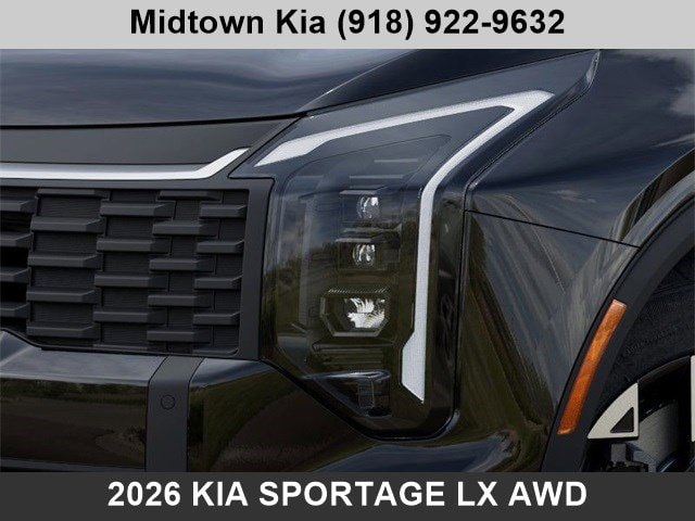 2026 Kia Sportage LX AWD for sale Tulsa. Recent Arrival! 23/26 City/Highway MPG AWD, Financing is available for everyone, I4 8-Speed Automatic AWD. If you're searching for the new 2026 Kia Sportage for Sale in Tulsa or Broken Arrow, then this 2026 Sportage LX might just be the perfect Kia SUV for you! Located at our Kia dealership in Tulsa, this Ebony Black Kia Sportage is a new 2026 Kia Sportage LX AWD SUV, and is complimented with a beautiful, Saturn Black Woven Cloth seat trim. And a few of its highlighted features include a 2.5 liter, inline 4-cylinder engine, and an 8-Speed Automatic Transmission, with an estimated 33 miles per gallon combined fuel economy. Don't miss out! Contact one of your friendly consultants today at Midtown Kia of Tulsa, at (918) 922-9632, for complete details on this 2026 Kia Sportage LX. Tulsa Kia clients are always invited to discover our convenient and hassle-free car-buying experience, here at Midtown Kia of Tulsa.