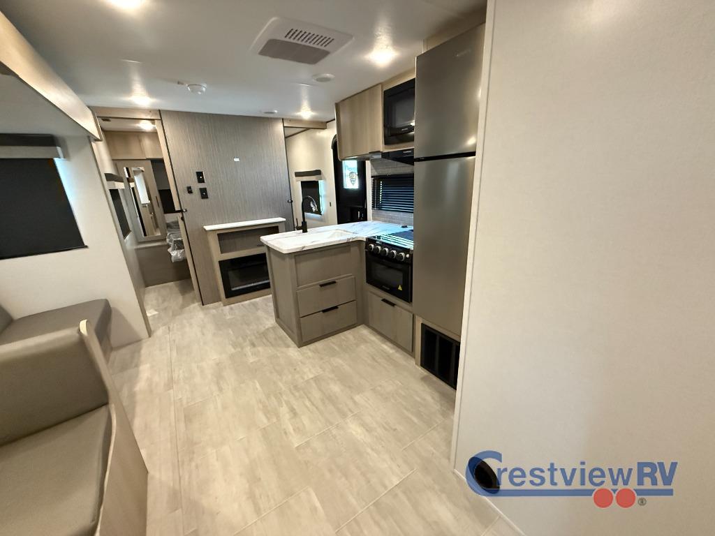 Dutchmen Kodiak travel trailer 280BHSL highlights: Kitchen Pantry, Front Private Bedroom, Pass-Through Storage, Large Slide Out. This travel trailer is perfect for weekend excursions or extended getaways at your favorite state park. You will have your own queen bed up front with storage space for your things, and the rear private bunkhouse will be perfect for guests. Here, you'll find a set of bunk beds plus a fold-up bunk over a booth dinette so there is a place to eat or play games back here. The full kitchen will let you cook meals each day, and the 10 cu. ft. refrigerator will keep your food fresh. Outside, a 14' power awning will provide some shade, and an outdoor refrigerator will keep cold drinks close by! Each Kodiak travel trailer by Dutchmen includes a diamond front plate, easy lube axles, and a power tongue jack for hassle-free towing. The bear cave storage will allow you to bring along all the camp gear, and the power awning with an LED light will create an inviting outdoor space. Head inside to enjoy the designer valances, blackout roller shades, and seamless countertops. There is also HyperDeck flooring that will withstand your many adventures plus a 6' 8" interior height for more head room. A high output furnace and 13.5k BTU A/C will keep you comfortable, and the on-demand tankless water heater will provide instant hot water when you need it!