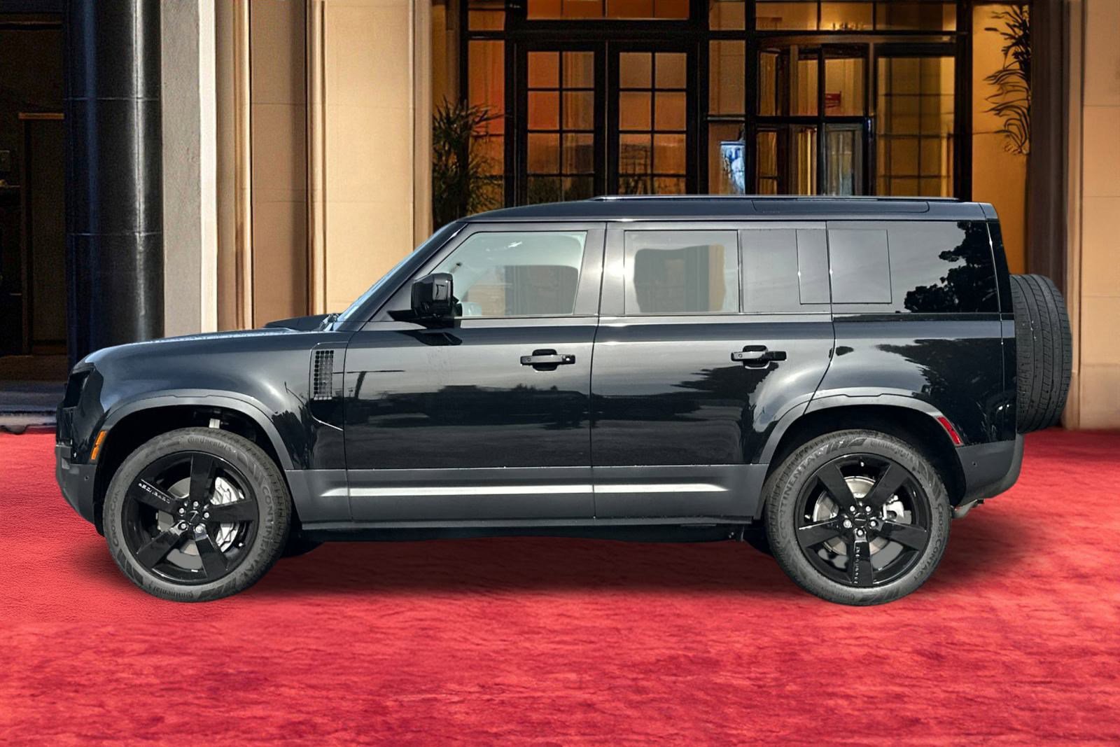 The 2026 Land Rover Defender 110 S is a new all-wheel drive SUV located at the Jaguar Land Rover Los Angeles dealership. It features a Santorini Black exterior and a Caraway Ebt Windsor & Kvadrat w Crwy Eby interior. The vehicle is equipped with an I-4 turbocharged engine, all-wheel drive, and an 8-speed automatic transmission. It offers a luxurious and rugged driving experience, with advanced features and a spacious interior. The Defender 110 is designed for both comfort and capability, making it a versatile choice for a variety of adventures.