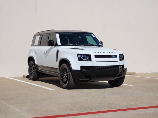 White 2026 Land Rover Defender 110 X-Dynamic SE X-Dynamic SE AWD 8-Speed Automatic 3.0L I6 Air Suspension Pack (Adaptive Dynamics and Electronic Air Suspension), Premium Upgrade Interior Pack (14-Way Heated and Cooled Electric Memory Front Seats, Extended Leather Upgrade, Leather Gearshift, and Leather Steering Wheel), Towing Pack (Advanced Tow Assist, All Terrain Progress Control (ATPC), Configurable Terrain Response, Terrain Response 2, and Tow Hitch Receiver), 12-Way Heated and Cooled Electric Memory Front Seats, 15 Speakers, 3-Zone Climate Control, 4-Wheel Disc Brakes, ABS brakes, Air Conditioning, Air Quality Sensor, Alloy wheels, AM/FM radio: SiriusXM, Apple CarPlay & Android Auto, Auto High-beam Headlights, Auto tilt-away steering wheel, Auto-dimming door mirrors, Auto-dimming Rear-View mirror, Automatic temperature control, Brake assist, Bumpers: body-color, Cabin Air Purification Plus, ClearSight Interior Rear View Mirror, Compass, Dark Grey Powder Coat Cross Car Beam, Delay-off headlights, Driver door bin, Driver vanity mirror, Dual front impact airbags, Dual front side impact airbags, Electronic Stability Control, Emergency Pack, Extended Black Exterior Pack, Exterior Parking Camera Rear, Four wheel independent suspension, Front anti-roll bar, Front Bucket Seats, Front Center Armrest, Front dual zone A/C, Front fog lights, Front reading lights, Fully automatic headlights, Garage door transmitter: HomeLink, Handover Pack, Heated door mirrors, Heated front seats, Heated steering wheel, Illuminated entry, Interior Protection Pack, Light Cloud Headlining, Low tire pressure warning, Memory seat, Navigation system: Connected Navigation PIVI Pro, Occupant sensing airbag, Outside temperature display, Overhead airbag, Overhead console, Panic alarm, Passenger door bin, Passenger vanity mirror, Power door mirrors, Power driver seat, Power moonroof, Power passenger seat, Power steering, Power windows, Radio data system, Radio: Meridian Surround Sound System, Rain sensing wipers, Rear anti-roll bar, Rear fog lights, Rear reading lights, Rear seat center armrest, Rear Seat Convenience Pack, Rear window defroster, Rear window wiper, Remote keyless entry, Resist Seat Trim, Security system, Speed control, Speed-sensing steering, Speed-Sensitive Wipers, Split folding rear seat, Steering wheel memory, Steering wheel mounted audio controls, Tachometer, Telescoping steering wheel, Tilt steering wheel, Traction control, Trip computer.