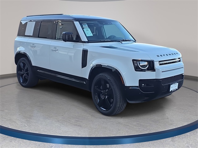 Fuji White 2026 Land Rover Defender 110 X-Dynamic SE 3.0L I6 8-Speed Automatic X-Dynamic SE 14-Way Heated and Cooled Electric Memory Front Seats, 15 Speakers, Advanced Off-Road Pack, All Terrain Progress Control (ATPC), Apple CarPlay & Android Auto, Cold Climate Package, Configurable Terrain Response, Extended Black Exterior Pack, Extended Leather Upgrade, Fully automatic headlights, Headlight Power Wash, Heated steering wheel, Heated Windscreen, Leather Gearshift, Leather Steering Wheel, Memory seat, Navigation system: Connected Navigation PIVI Pro, Premium Upgrade Interior Pack, Radio: Meridian Surround Sound System, Terrain Response 2, Wheels: 22" Gloss Black Style 5098. Colorado's largest Selection of Land Rover vehicles. We add a Dealer Doc fee of $795 to every vehicle purchase. We also pre-equip Stargard on every vehicle we keep for security, the cost is $995. Many of our vehicles are stored off premises. Please call 303.347.1500 before your visit so we can have the car ready for you when you arrive.