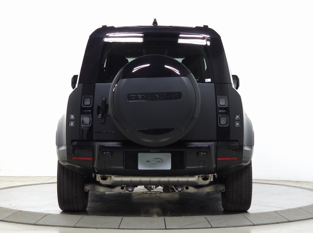 Recent Arrival! 351CP - Defender 3.0L T/C Petrol MHEV AWD 5 Door Auto 400PS X-Dynamic SE LRX95 - Emergency Pack LRX92 - Rear Seat Convenience Pack DF003 - Wheel Protection Pack DEF99 - Defender Handover Pack D0601 - Interior Protection Pack 328AD - Body-colored Spare Wheel Cover 304KB - Ebony Resist seats with Ebony interior 245AD - Cross Car Beam in Dark Grey Powder Coat finish 1AG - Santorini Black 188NR - Light Cloud headlining 087FH - Matte Protective Film 082ZZ - Volume Build Phase 080AC - Body-colored Roof 075QD - Extended Black Exterior Pack 048BD - Illuminated Metal Treadplates w/Script 039IB - Head-Up Display 031SZ - 22'''' Style 5098, 5 spoke, Gloss Black Wheels 031BS - ClearSight Interior Rear View Mirror 028ME - 22'''' Full-Size Spare Wheel 14AB. The pricing of the vehicle is subject to change.